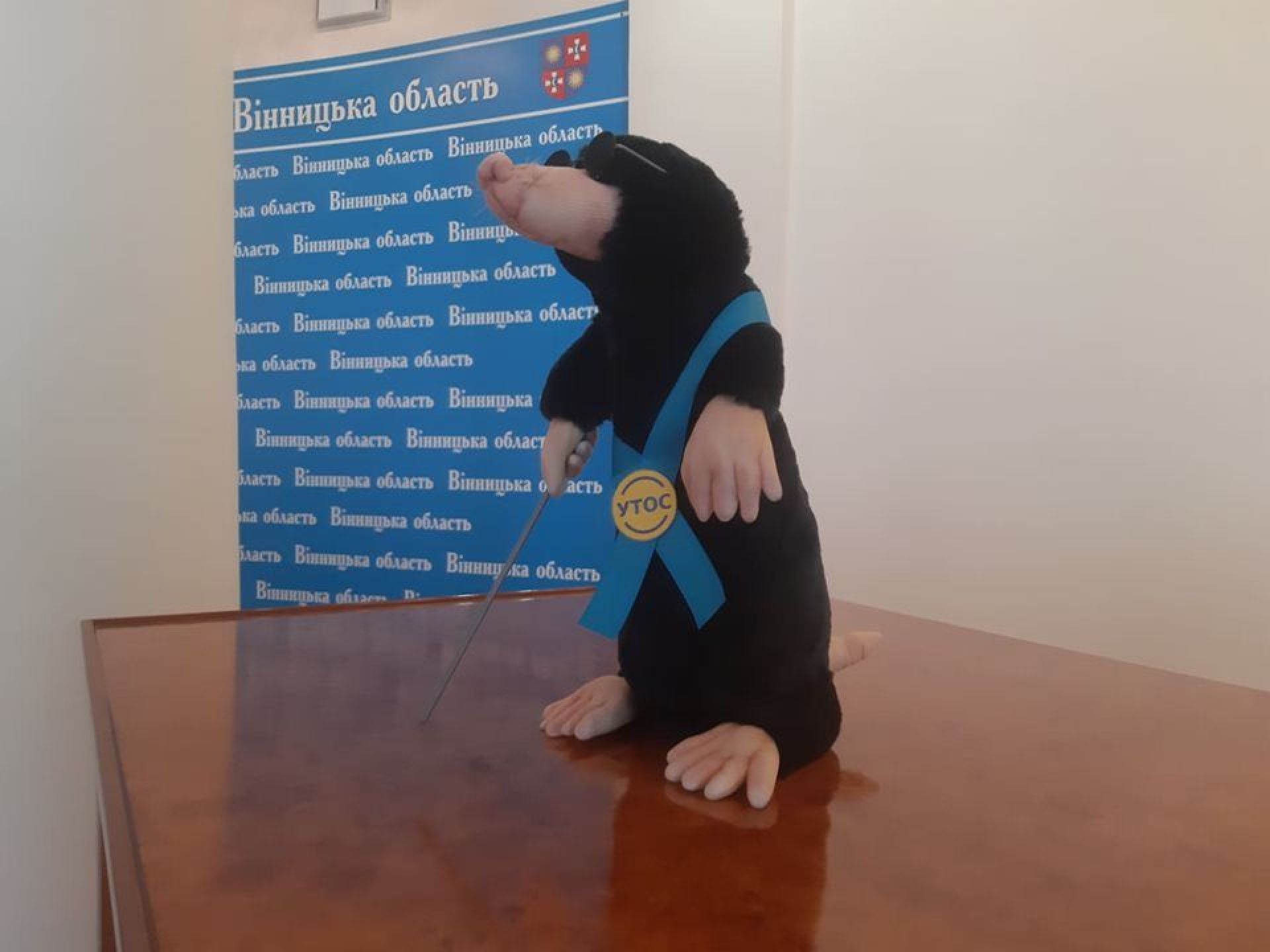 Для того, щоб новий очільник ОДА не забув про проблеми підприємства та товариства сліпих, Костянтин Ільницький подарував йому іграшку – крота. Яку пан Скальский, після завершення засідання забрати забув.