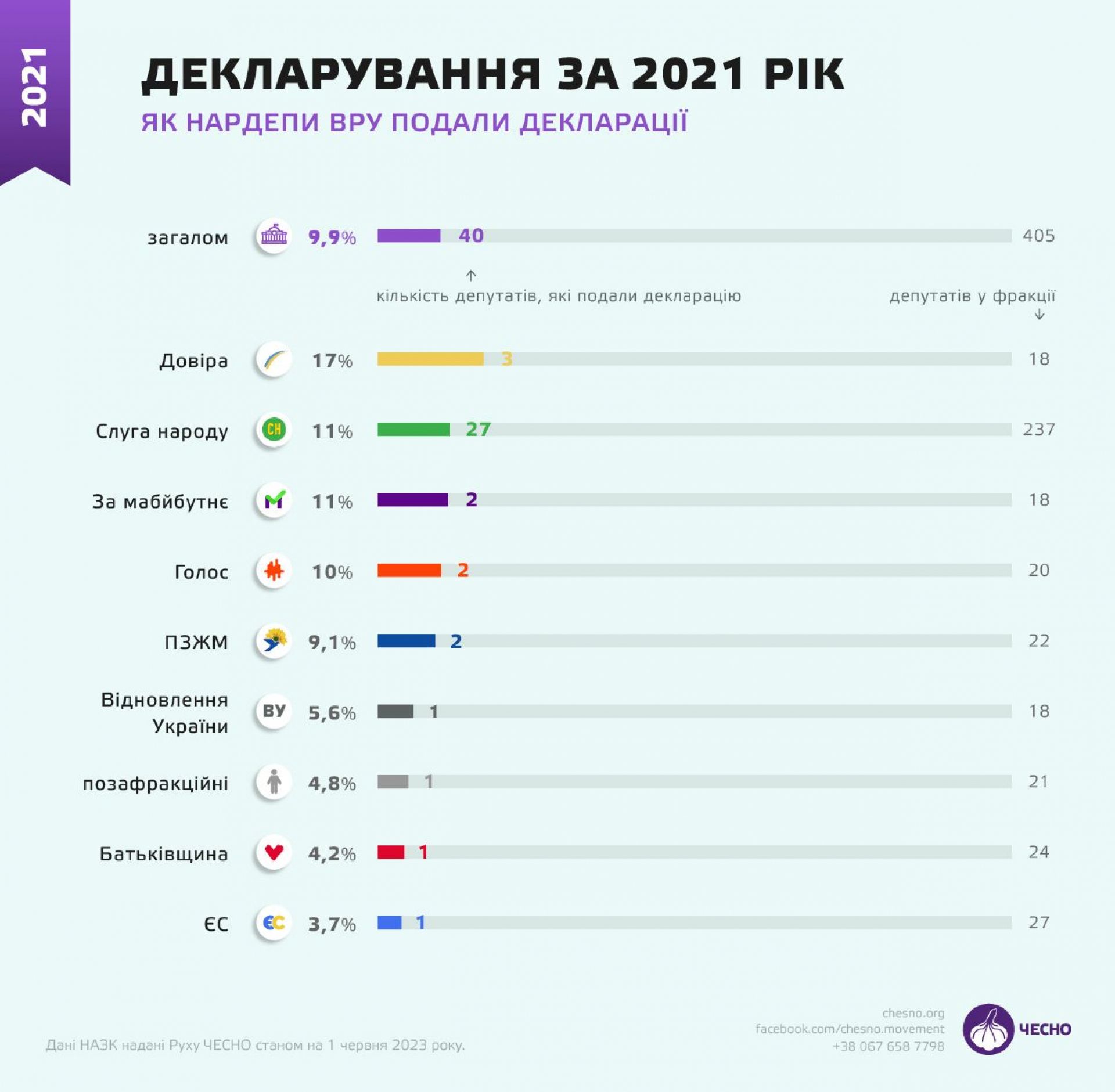 Найбільший відсоток поданих декларацій у депутатських групах «Довіра» та «За майбутнє», а також у владній фракції «Слуга народу».
