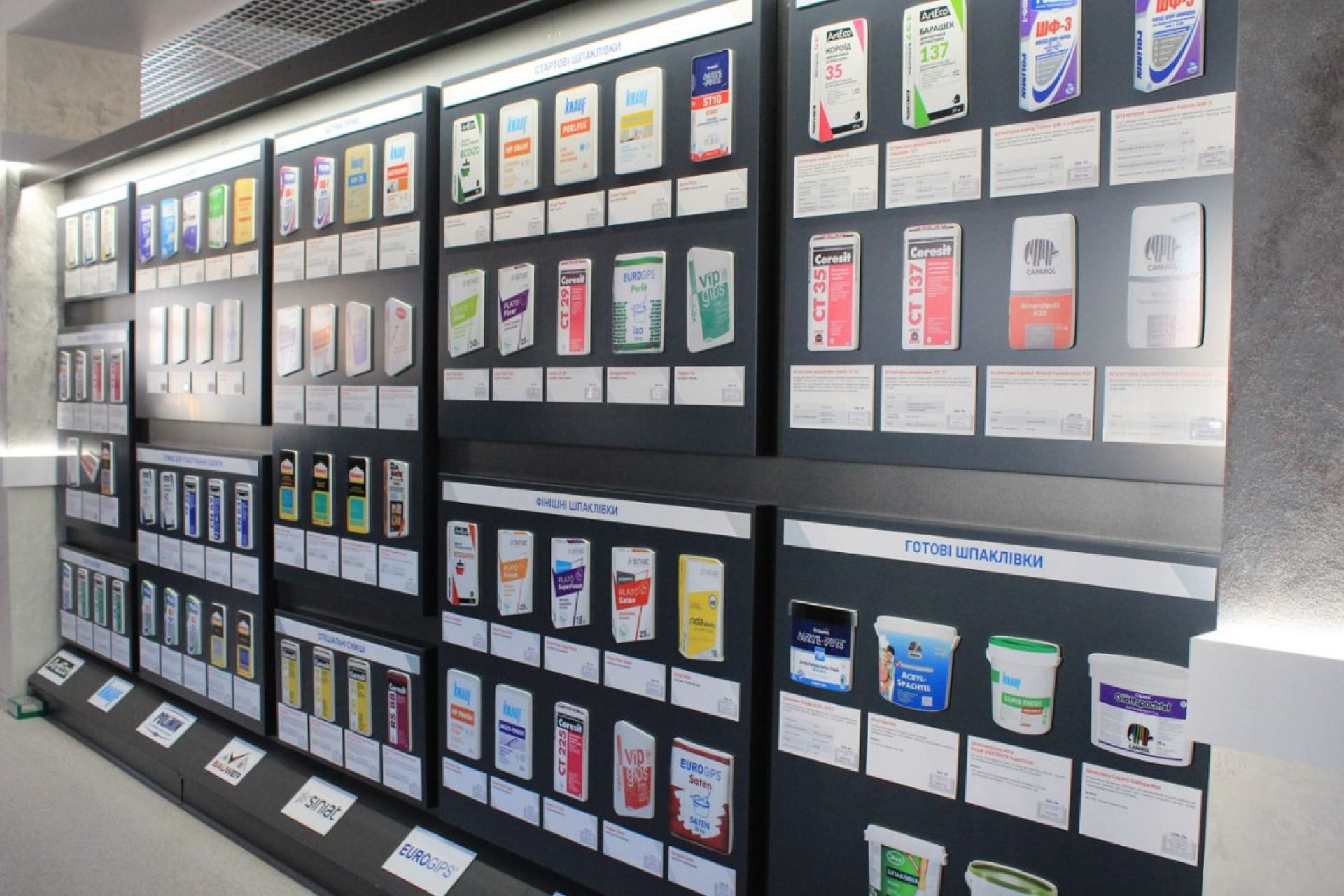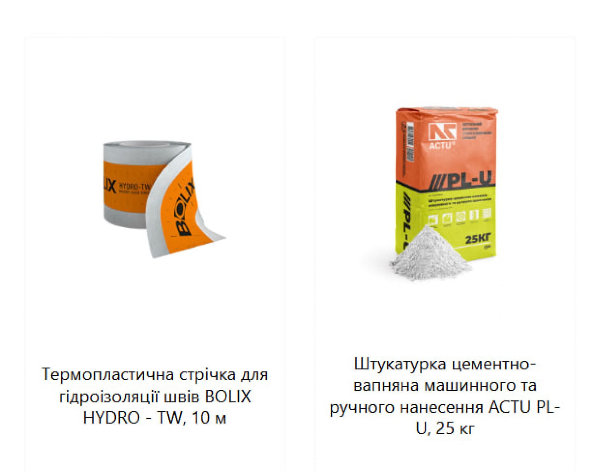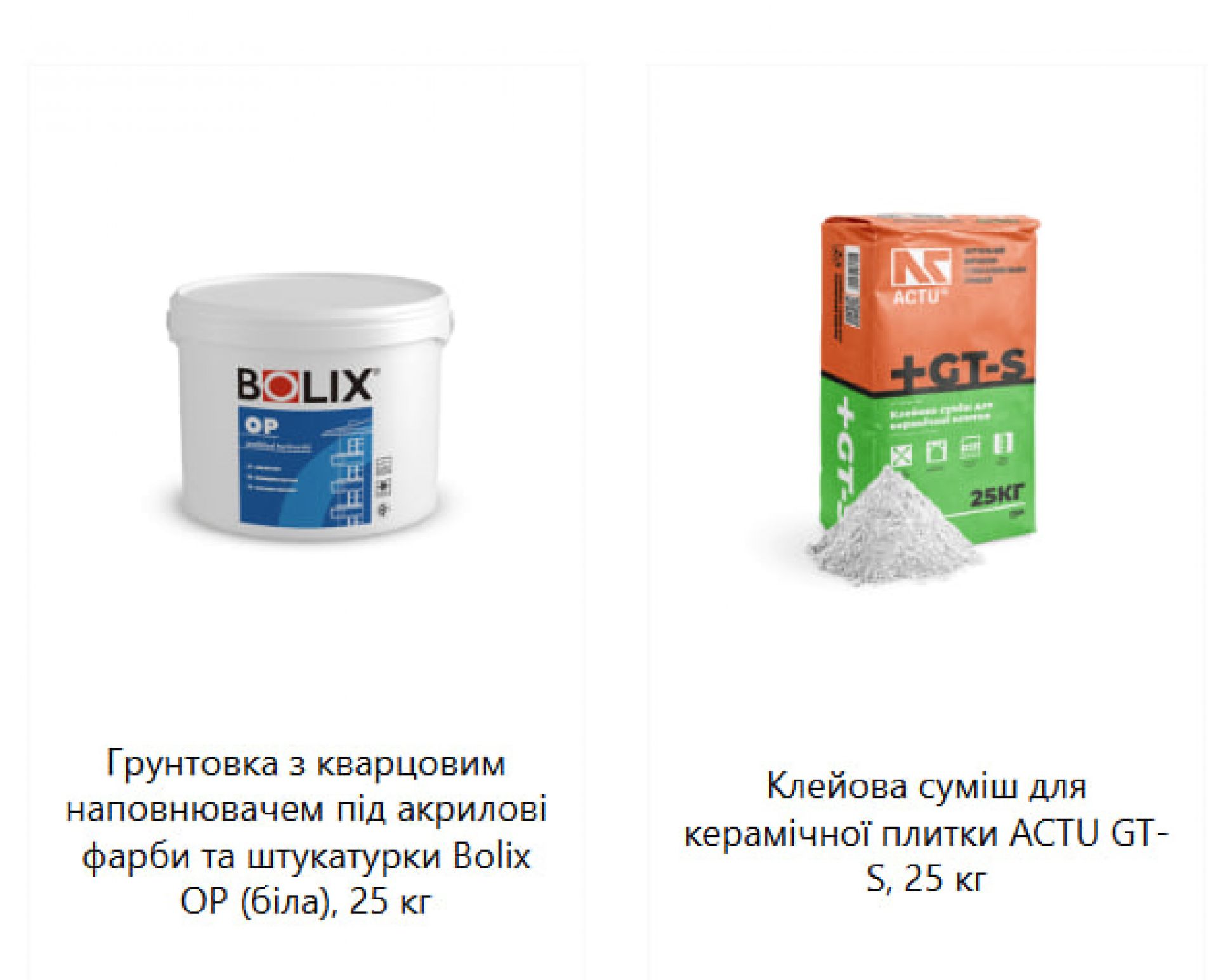 - Клеї для плитки, гідроізоляцію, шпаклівки та ґрунтівки