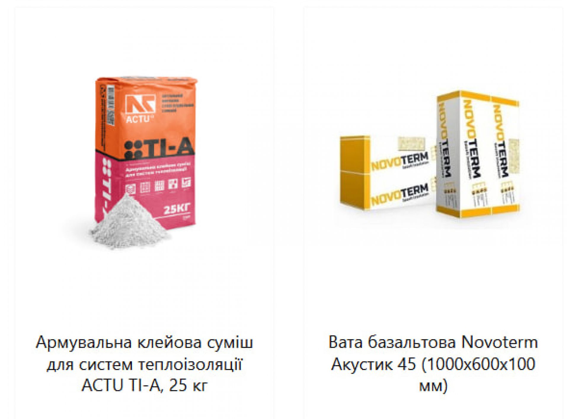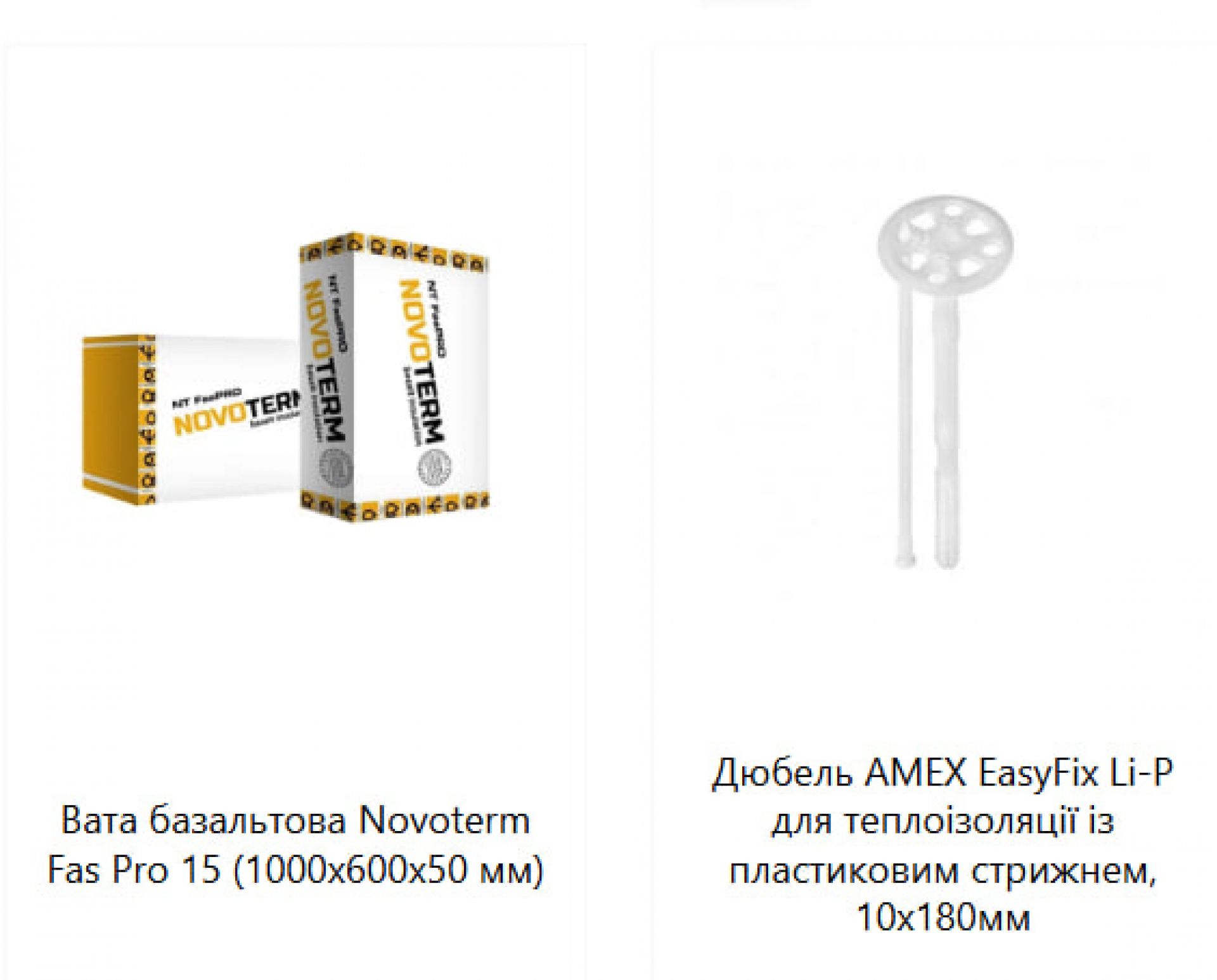 - Пінопласт, мінеральну вату та матеріали для утеплення фасаду