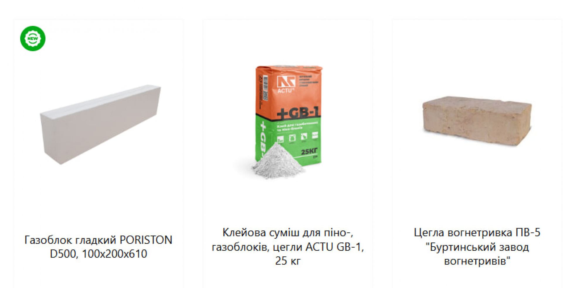 - Газоблоки, цемент і кладочні суміші