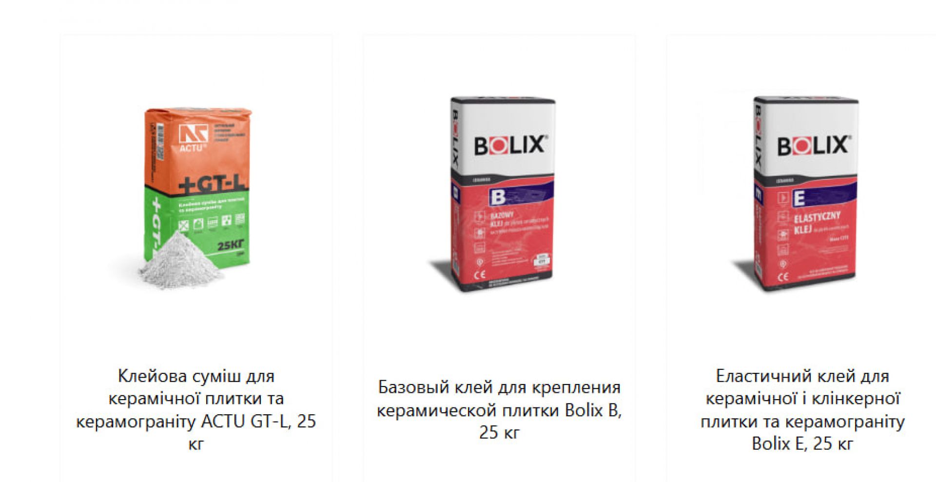 - клей для керамічної плитки (різні формати)
