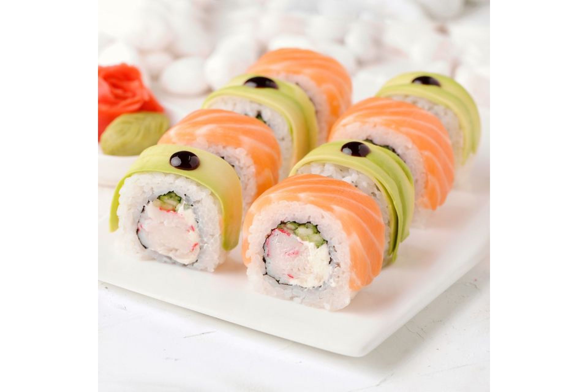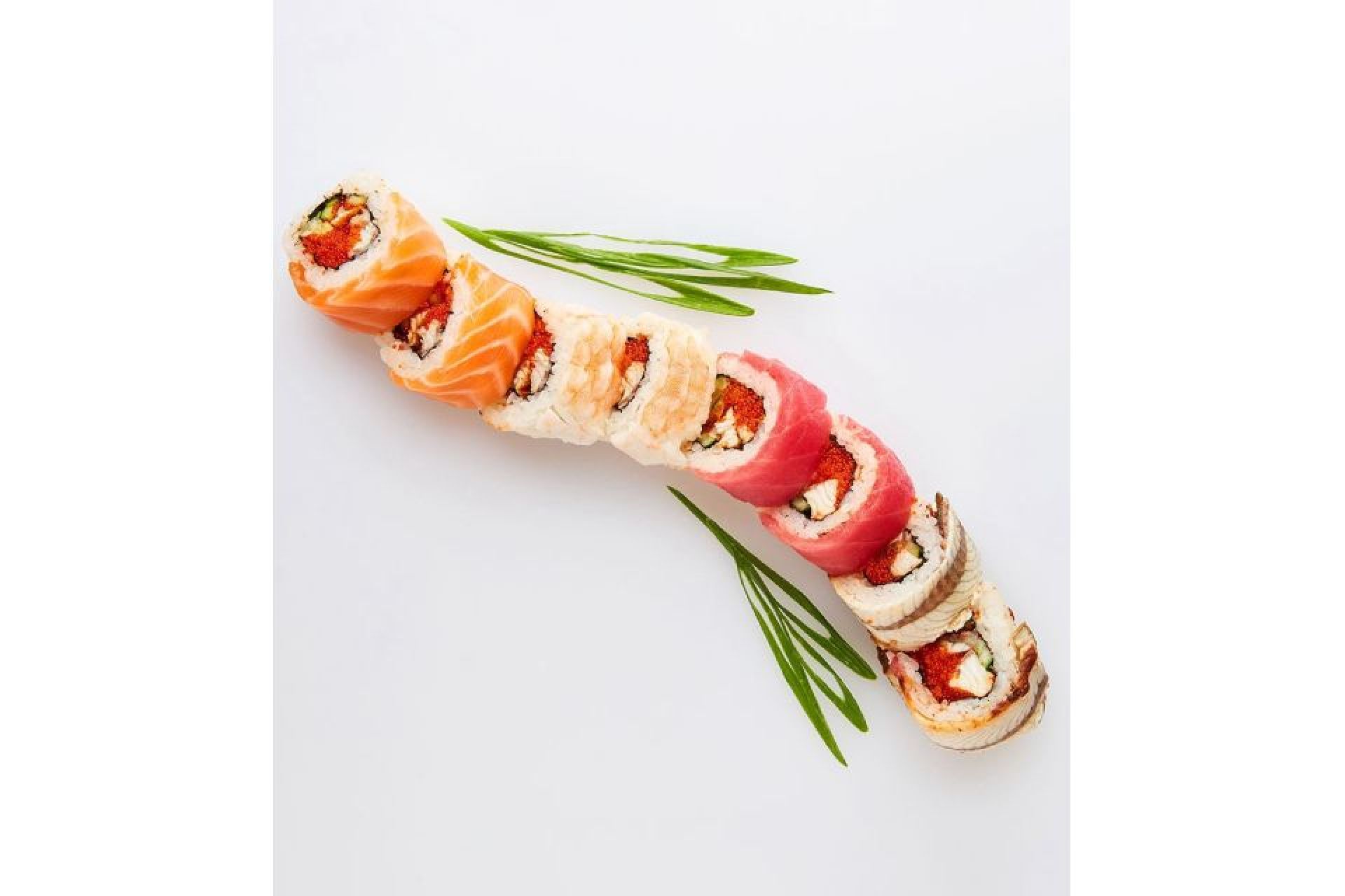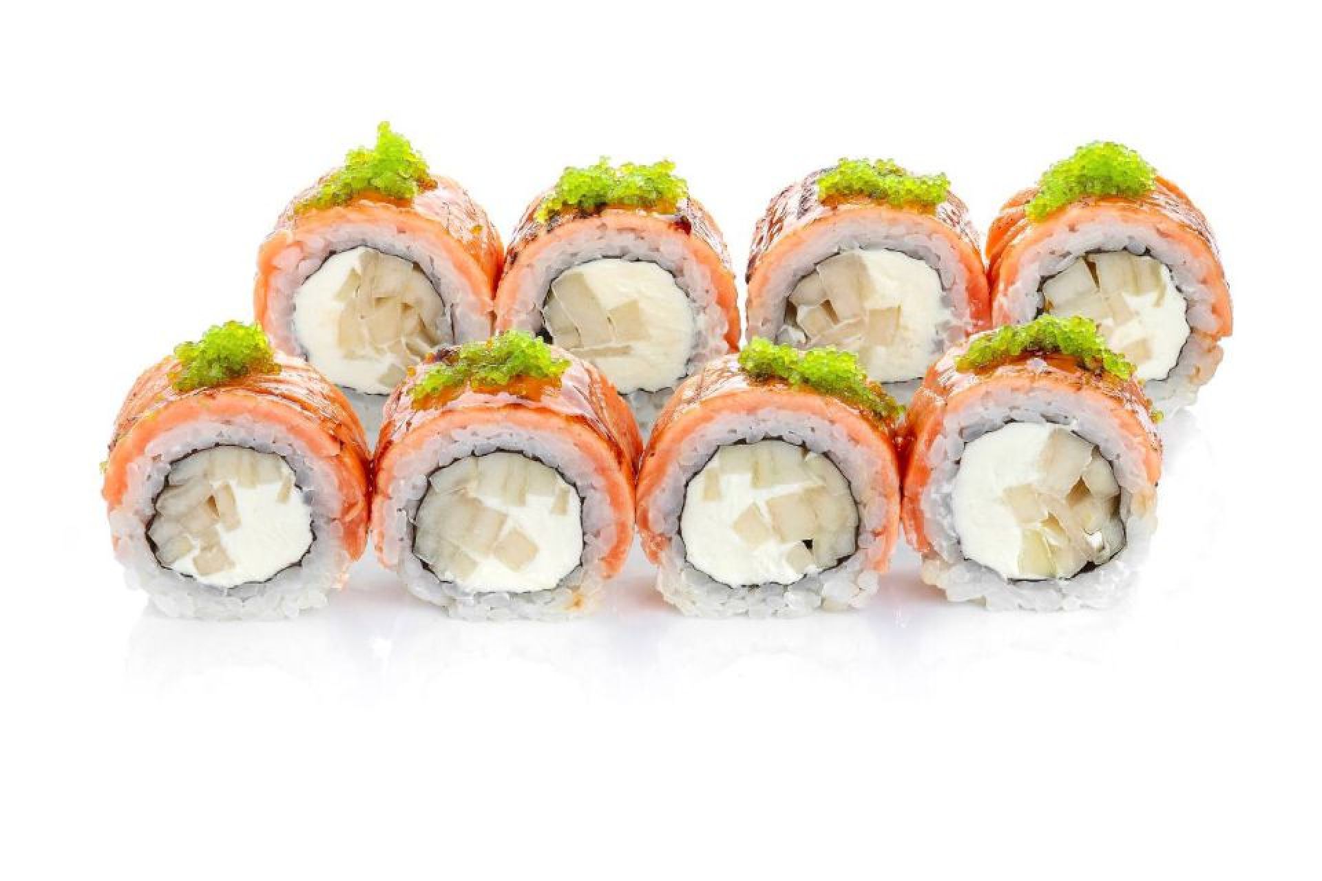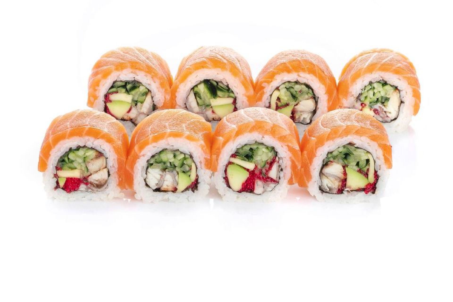 - Футомак рол (авокадо, філадельфія, лосось, креветка, вугор, рис)