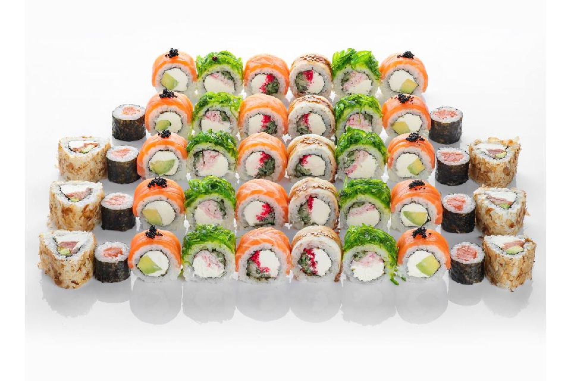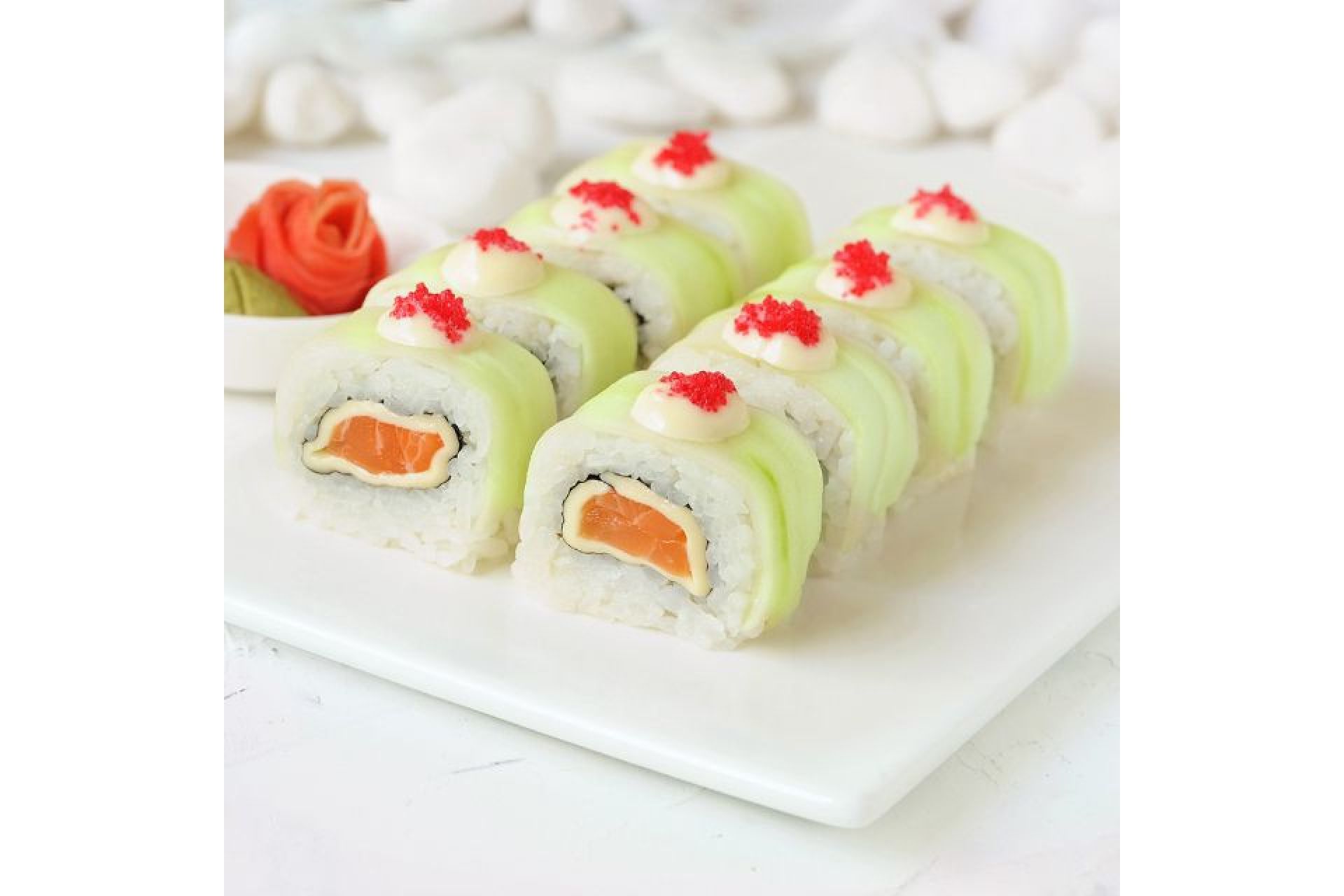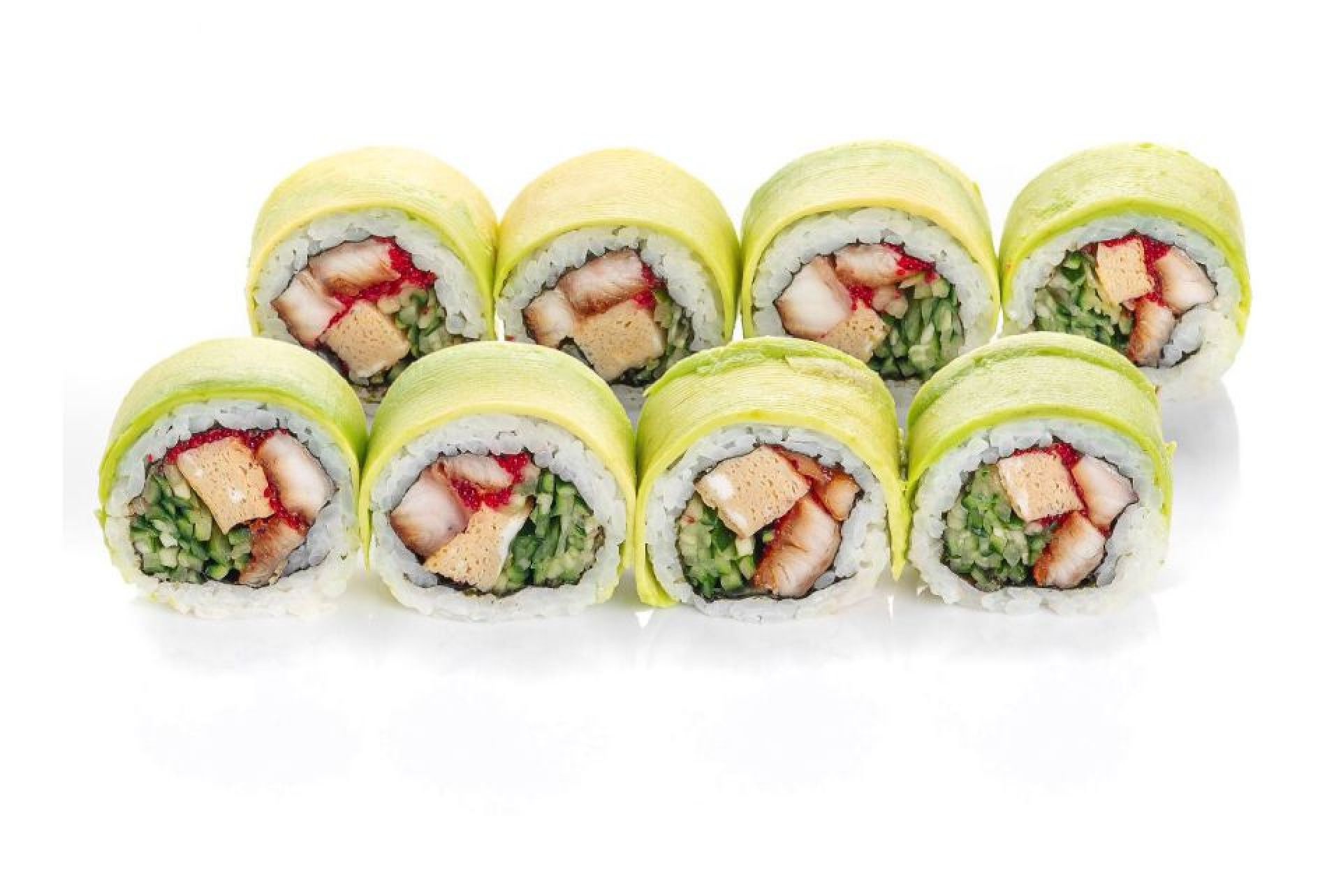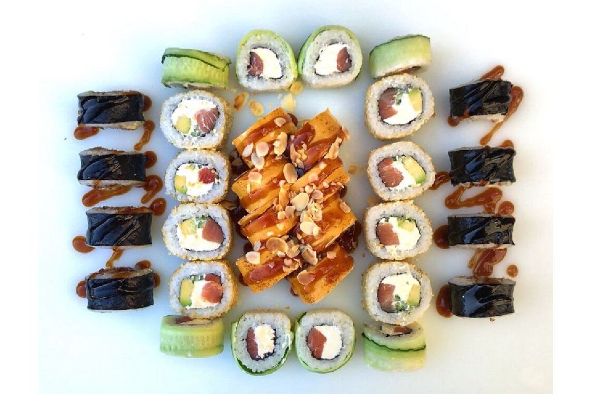 - Футомак рол (авокадо, філадельфія, лосось, креветка, вугор, рис)