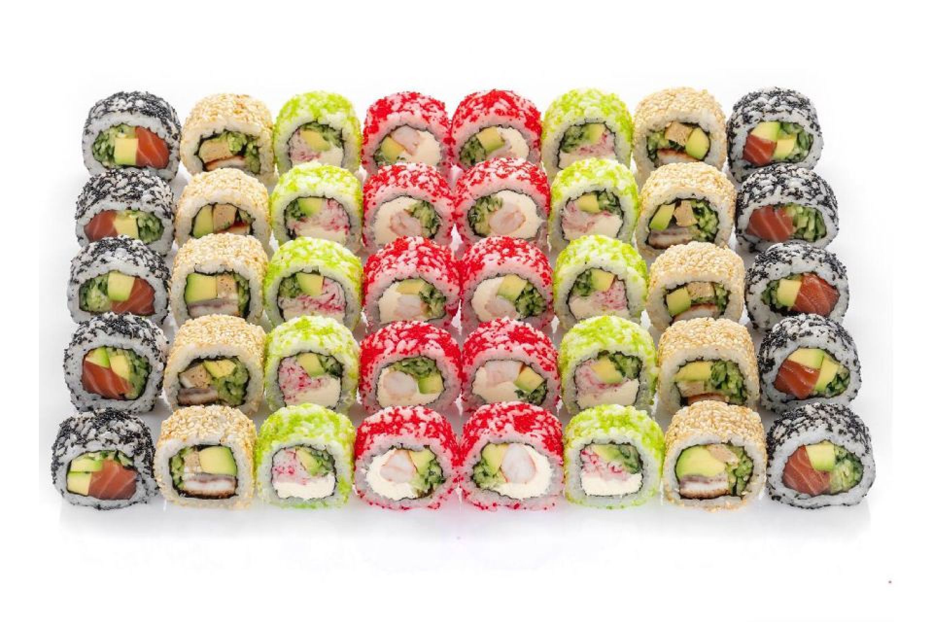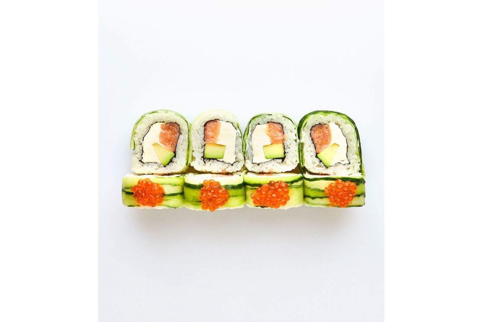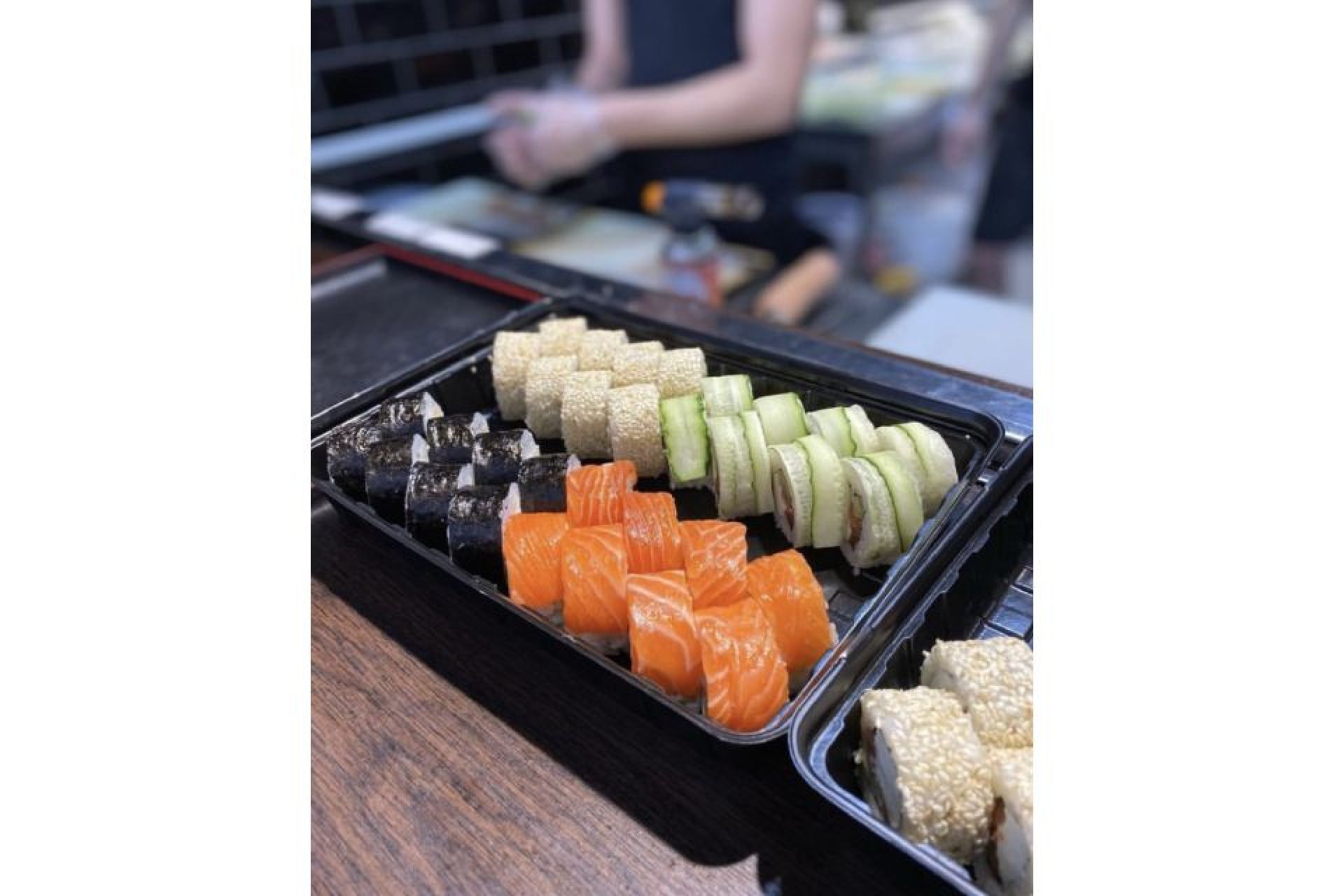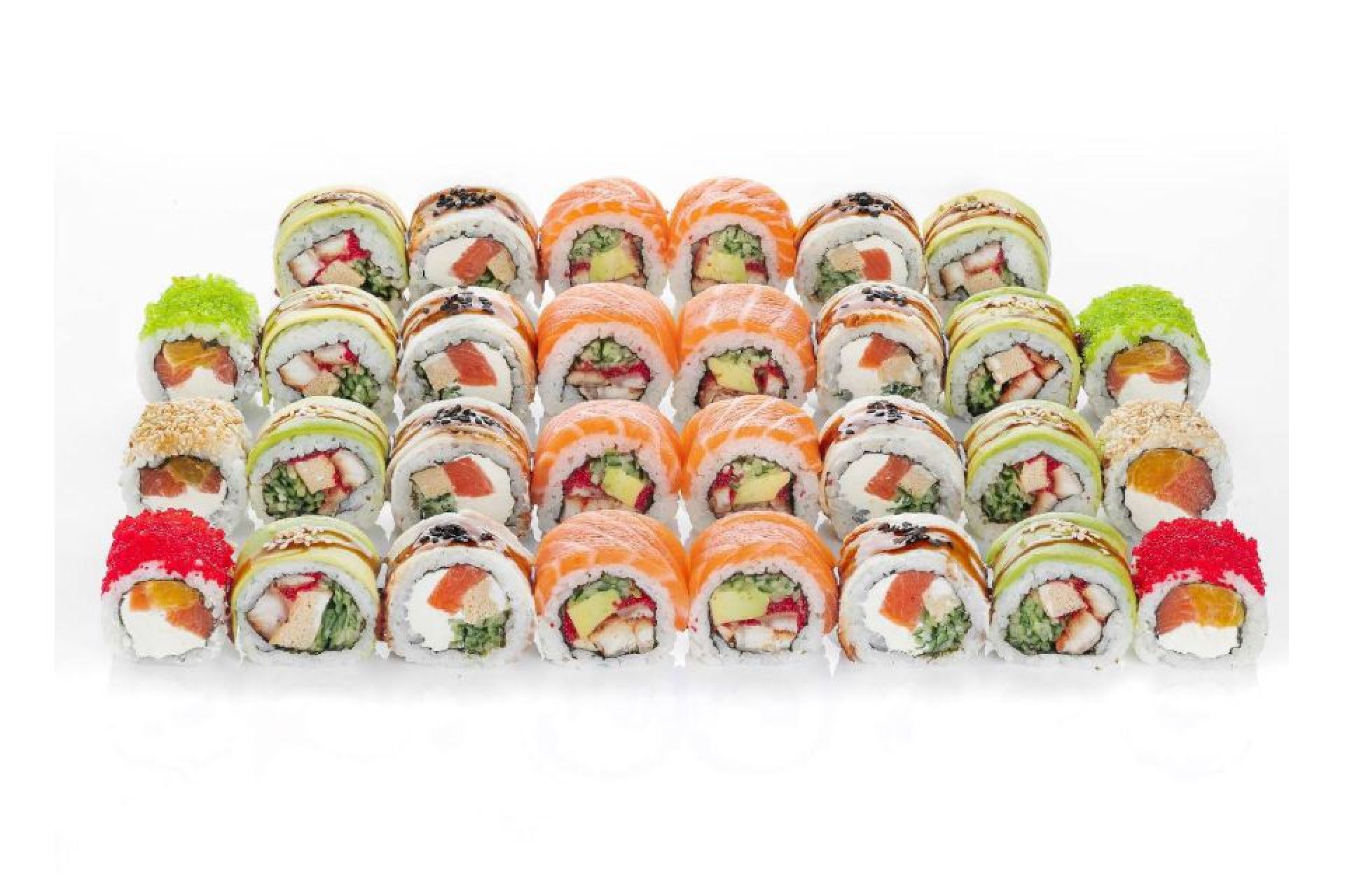 - Футомак рол (авокадо, філадельфія, лосось, креветка, вугор, рис)