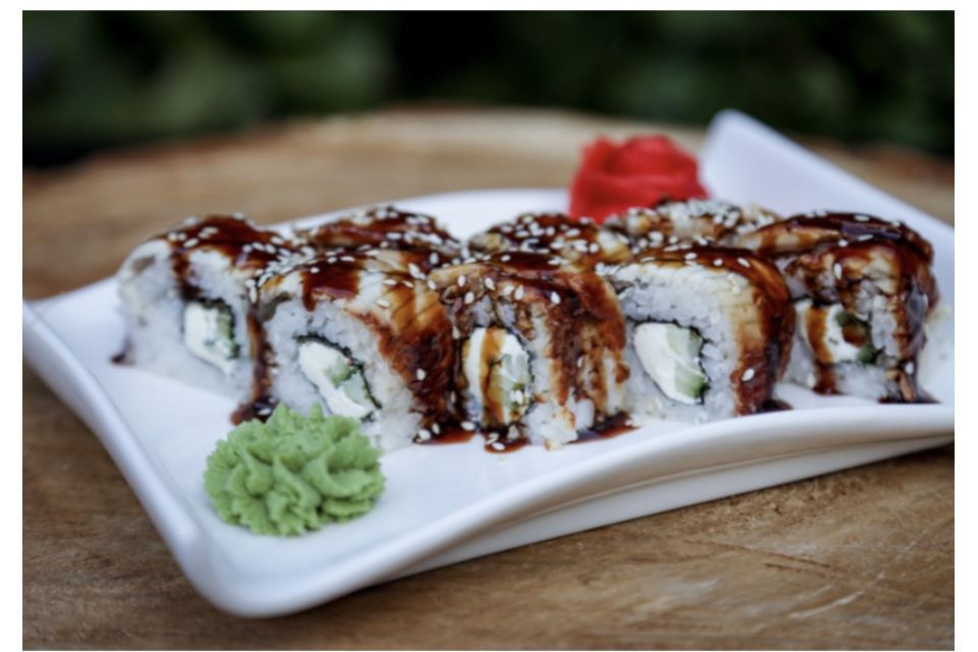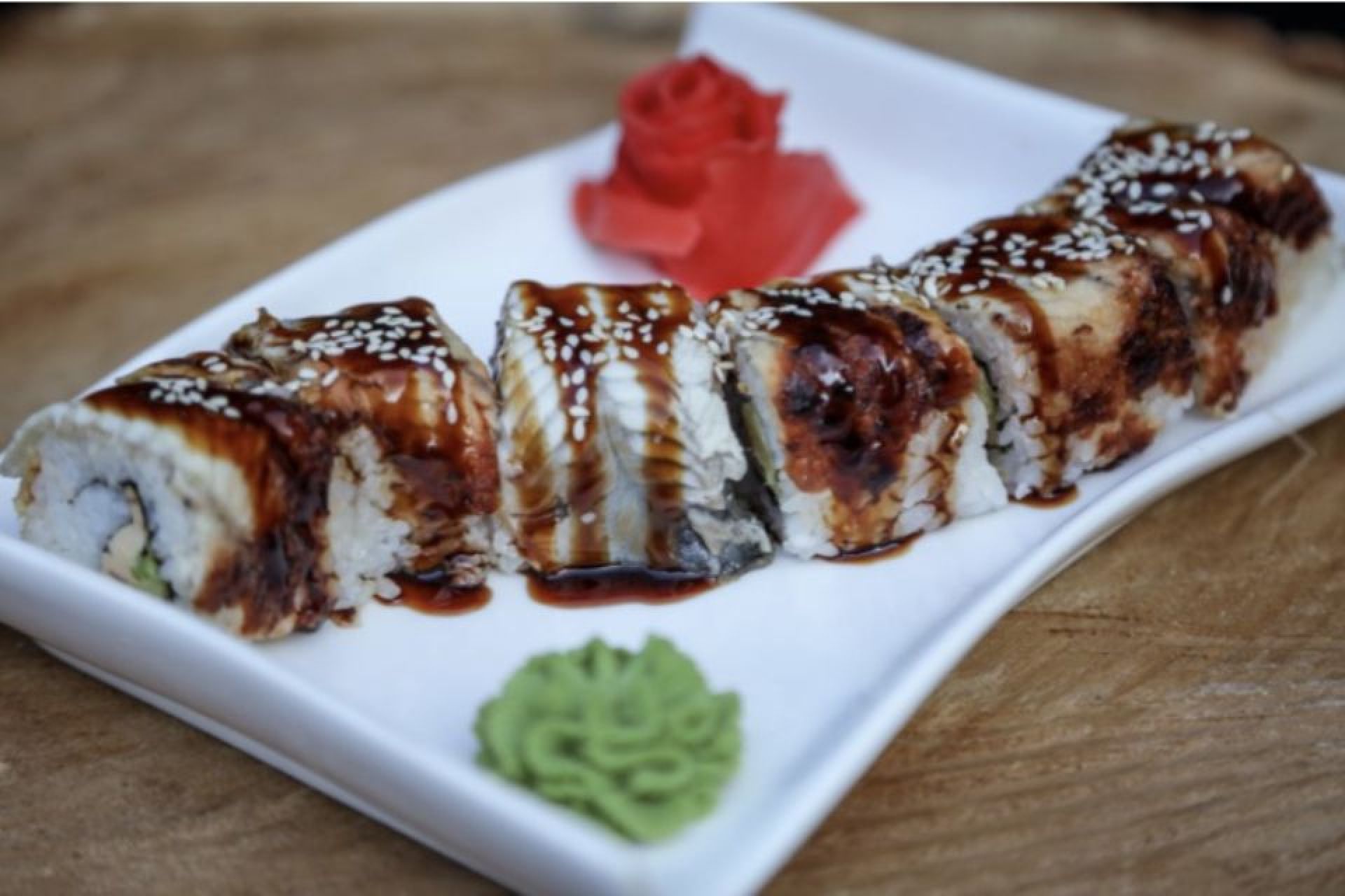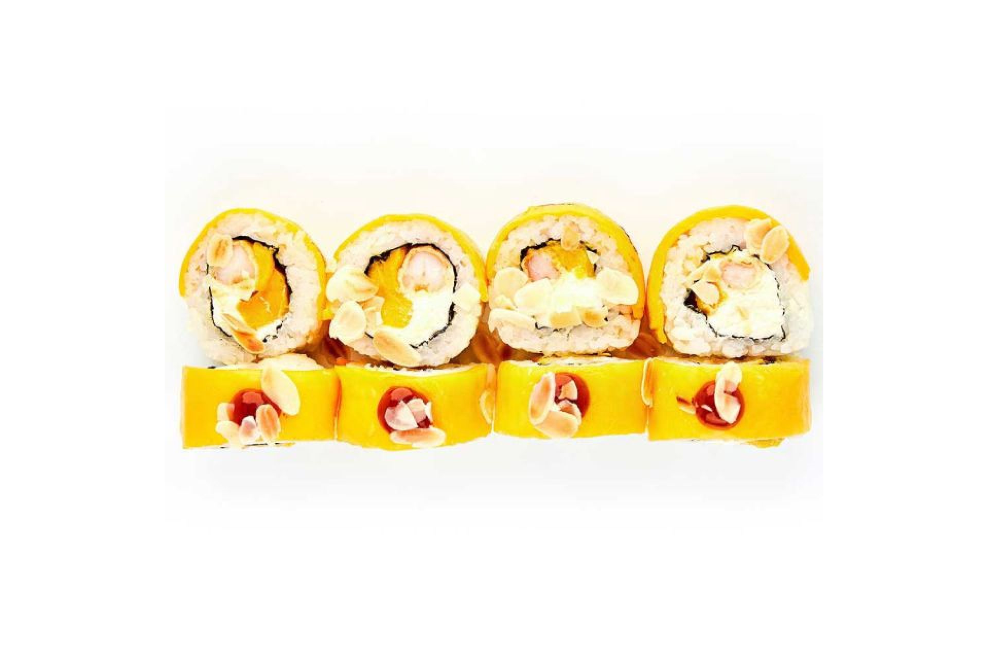 - Золотий дракон (вугор, лосось, огірок, тамаго які, філадельфія, соус унагі, кунжут, рис)