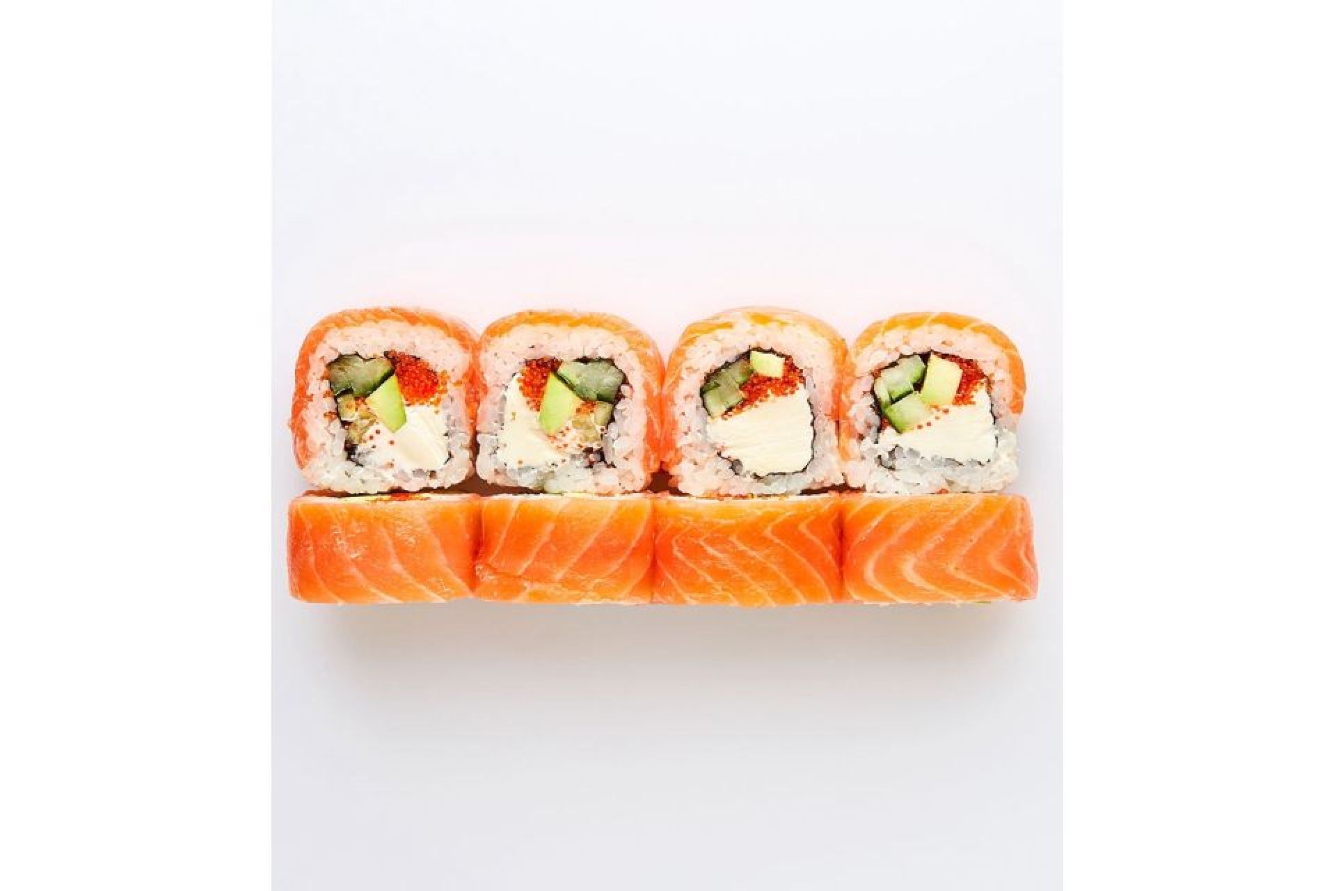 - Філадельфія класична (лосось свіжий, філадельфія, авокадо, ікра тобіко, рис)