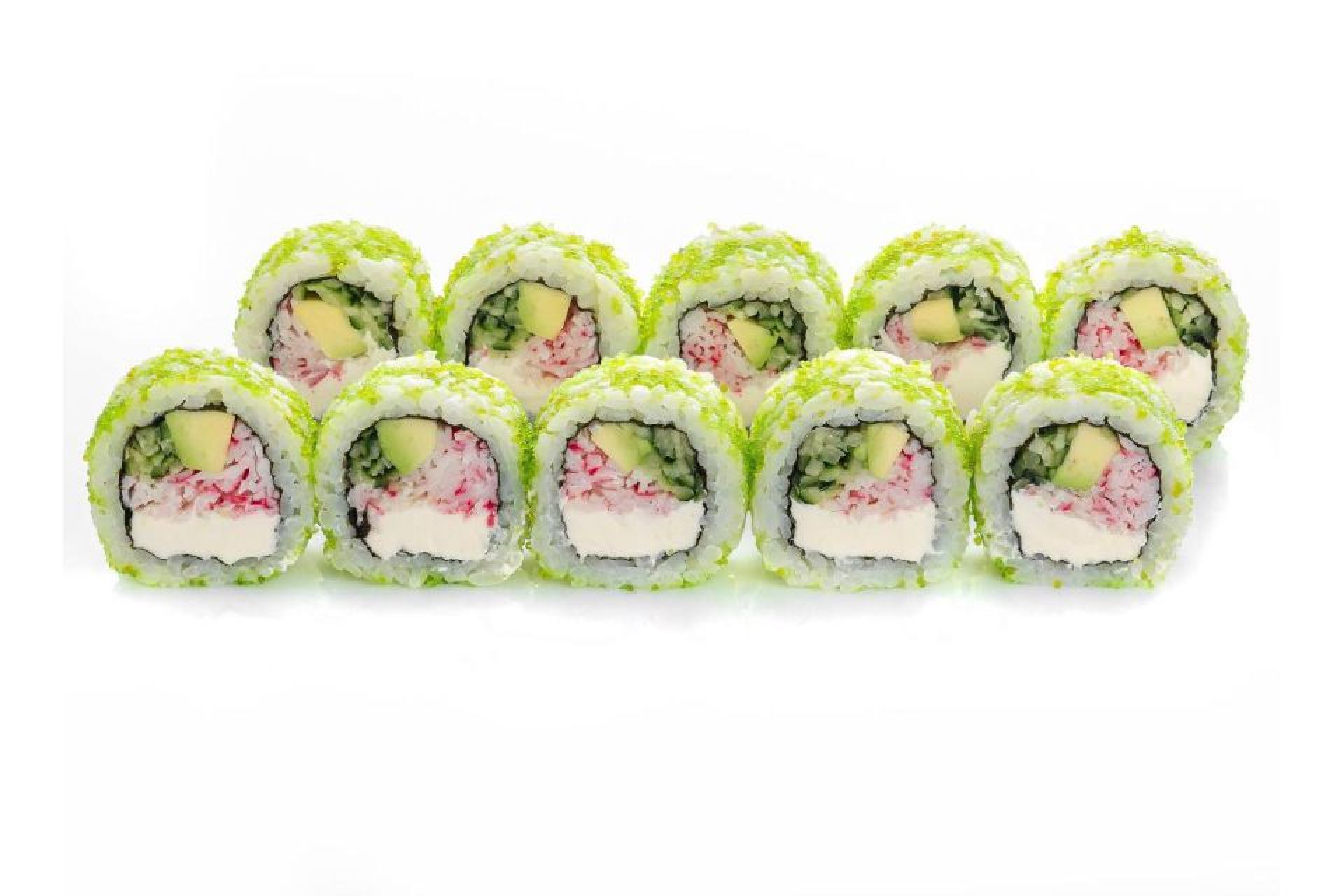 - Каліфорнія з крабом (філадельфія, ікра тобіко, сніжний краб, огірок, авокадо, рис)