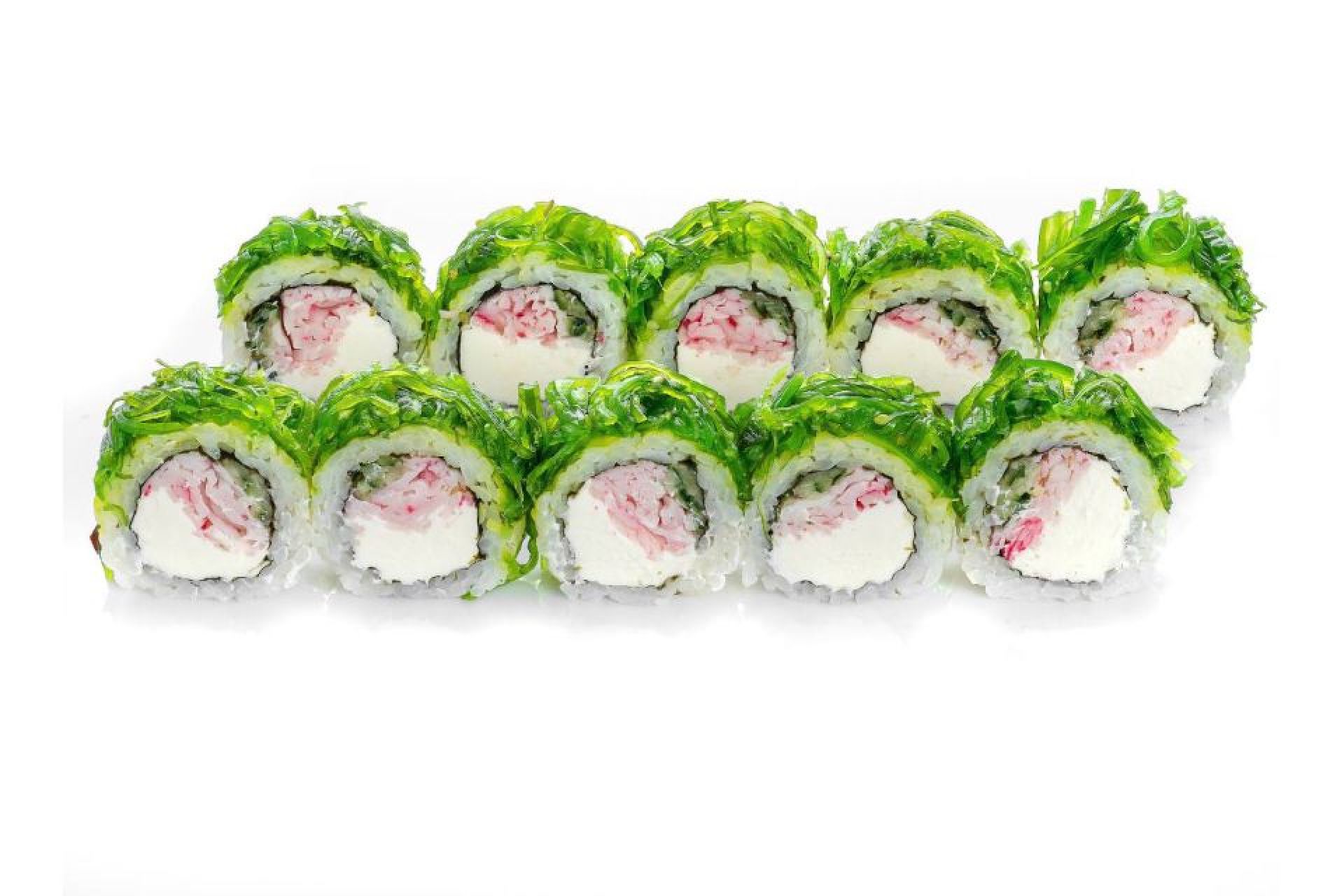 - Вакаме рол (водорості чука, сніжний краб, філадельфія, огірок, рис)