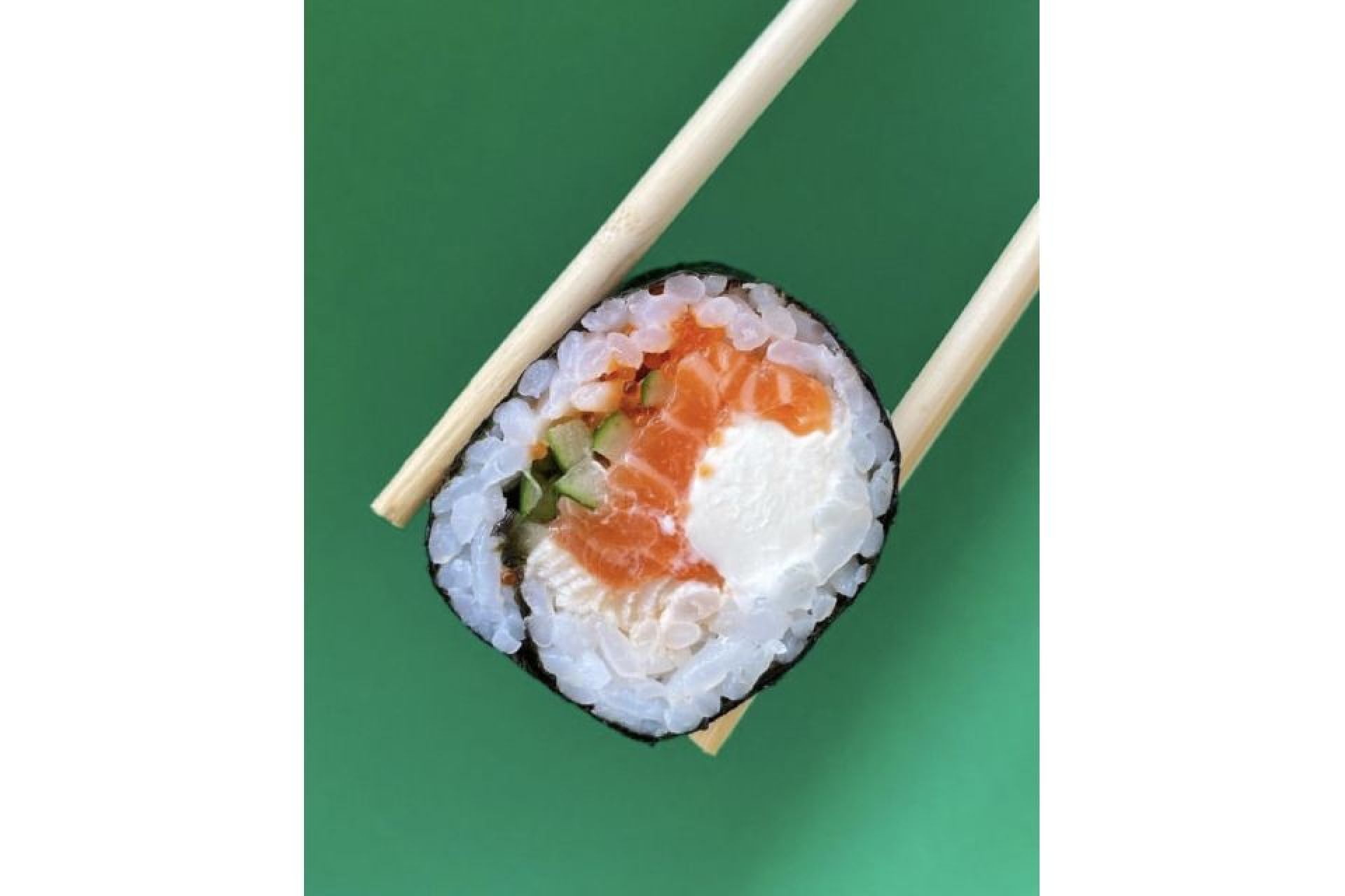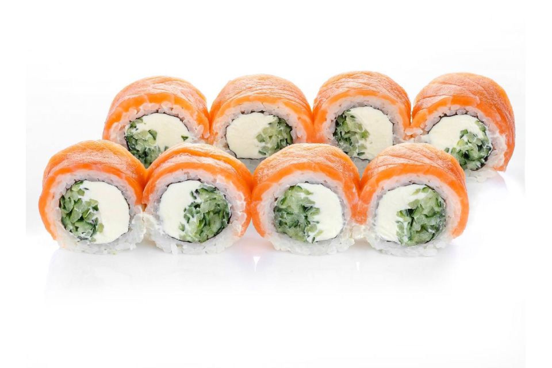 - Філадельфія зі свіжим лососем (філе лосося, філадельфія, огірок, авокадо, кунжут, рис)