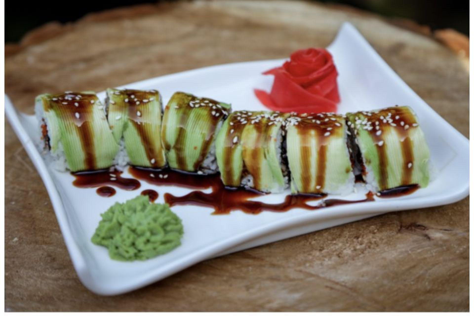 - Ебі-авокадо рол (креветка тигрова, огірок, авокадо, філадельфія, соус унагі, кунжут, рис)