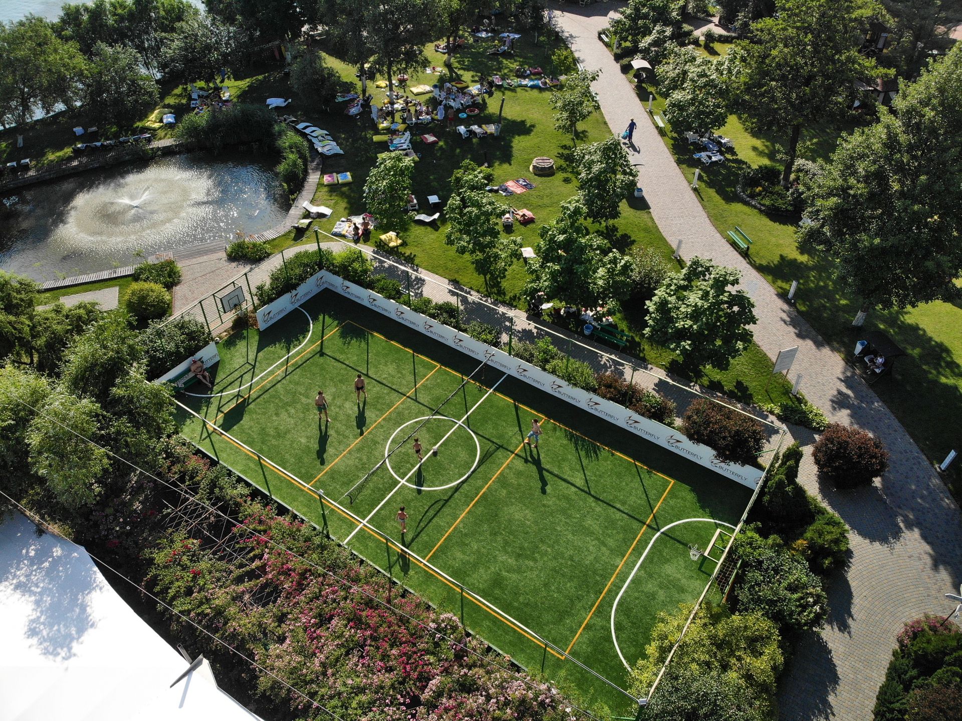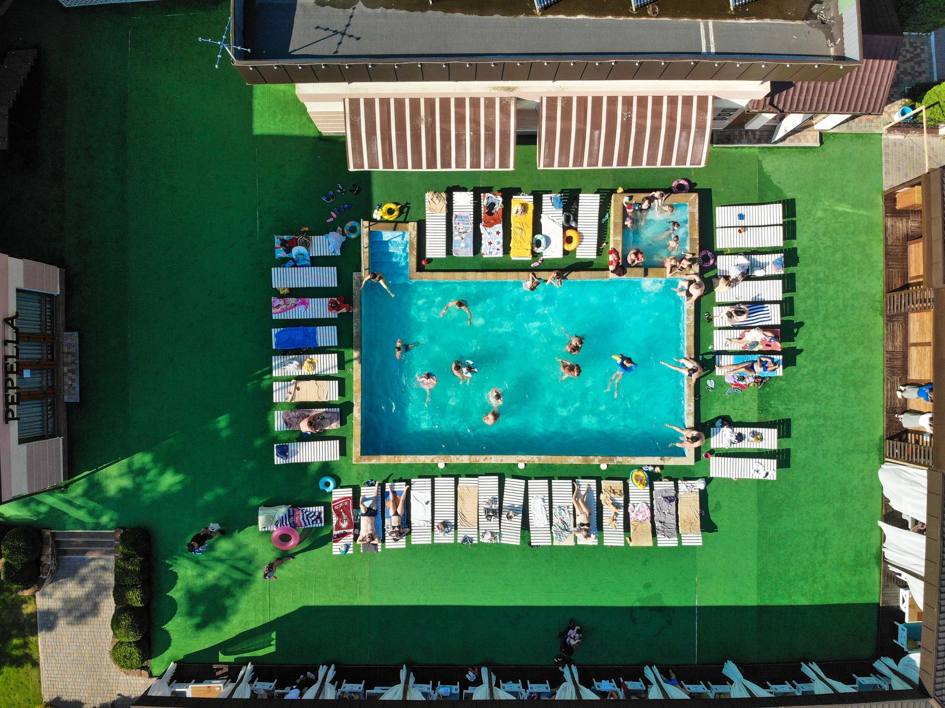 - Ну і справжня літня втіха — аква-гірка та 4 басейни. Басейн зі скляною стіною для найяскравіших фото 2021 року.