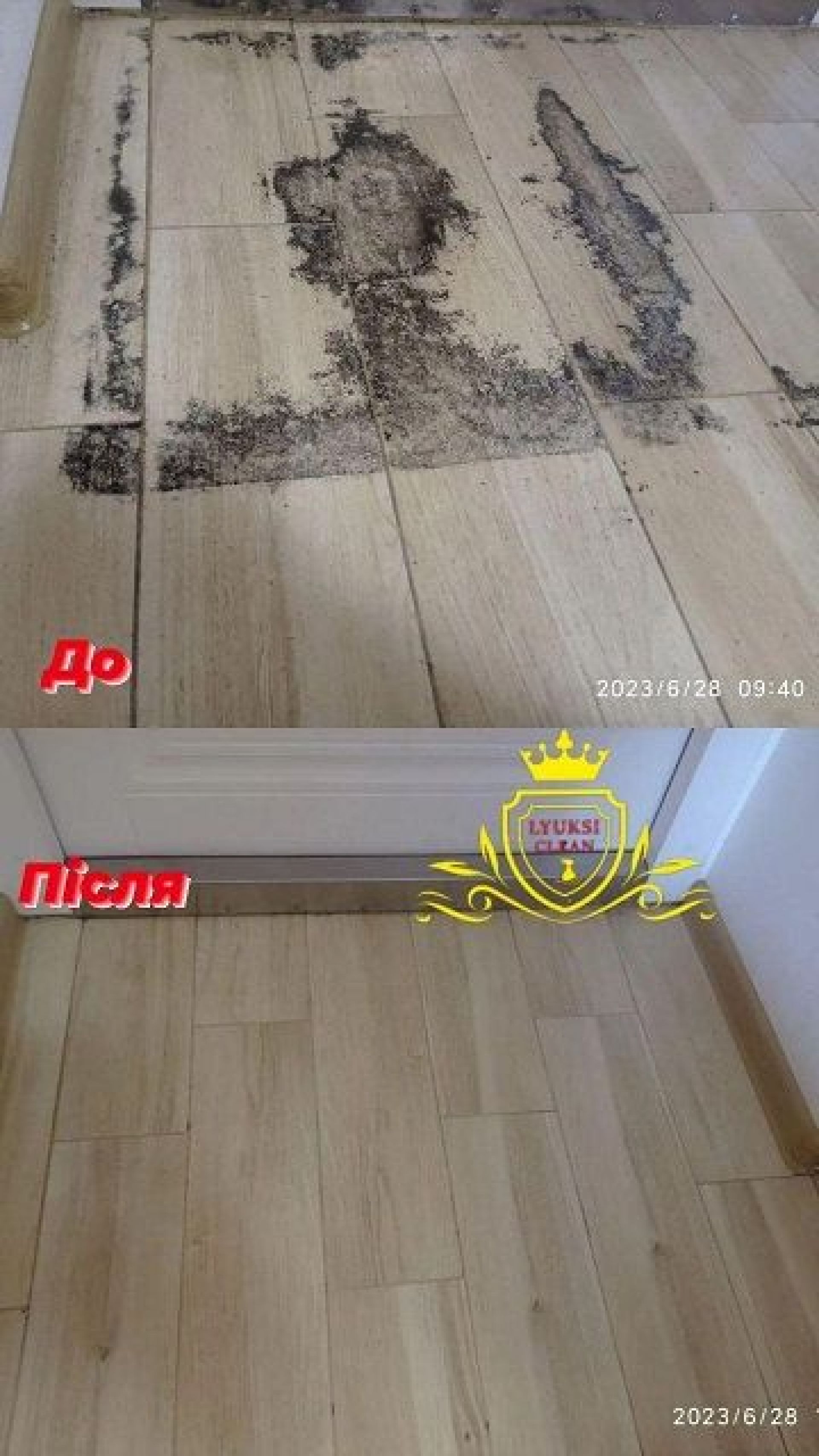 - Чистка підлоги (плитка, ковролін, ламінат) професійним обладнанням