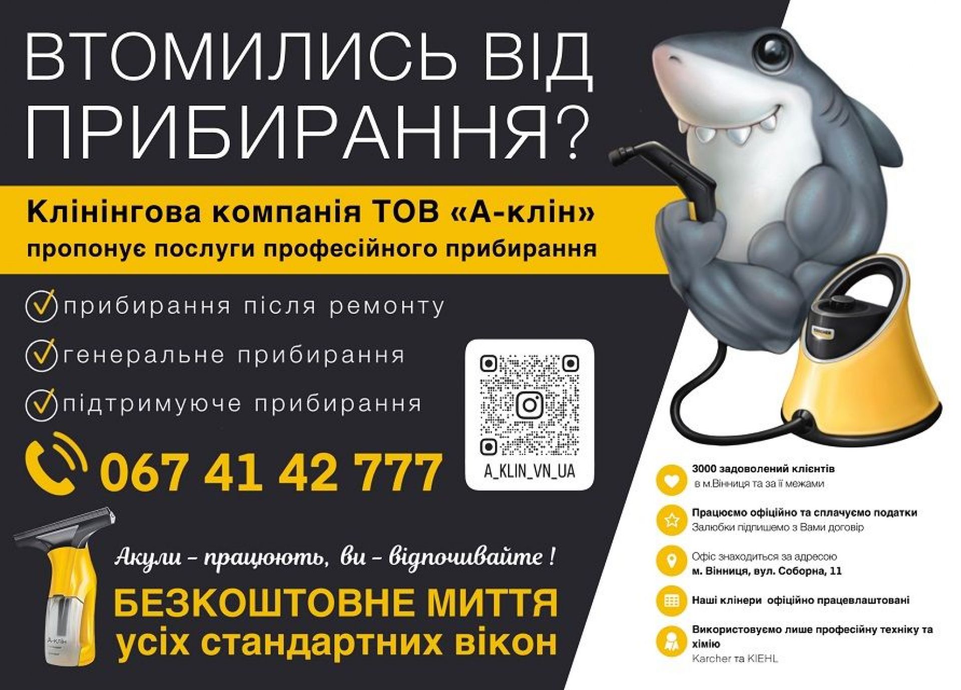 У Вінниці є компанія, якій довіряють найцінніше — чистоту власного дому. Це «Акули Клінінгу» — професійний клінінг з командою, яка працює з серцем, а не лише руками.
