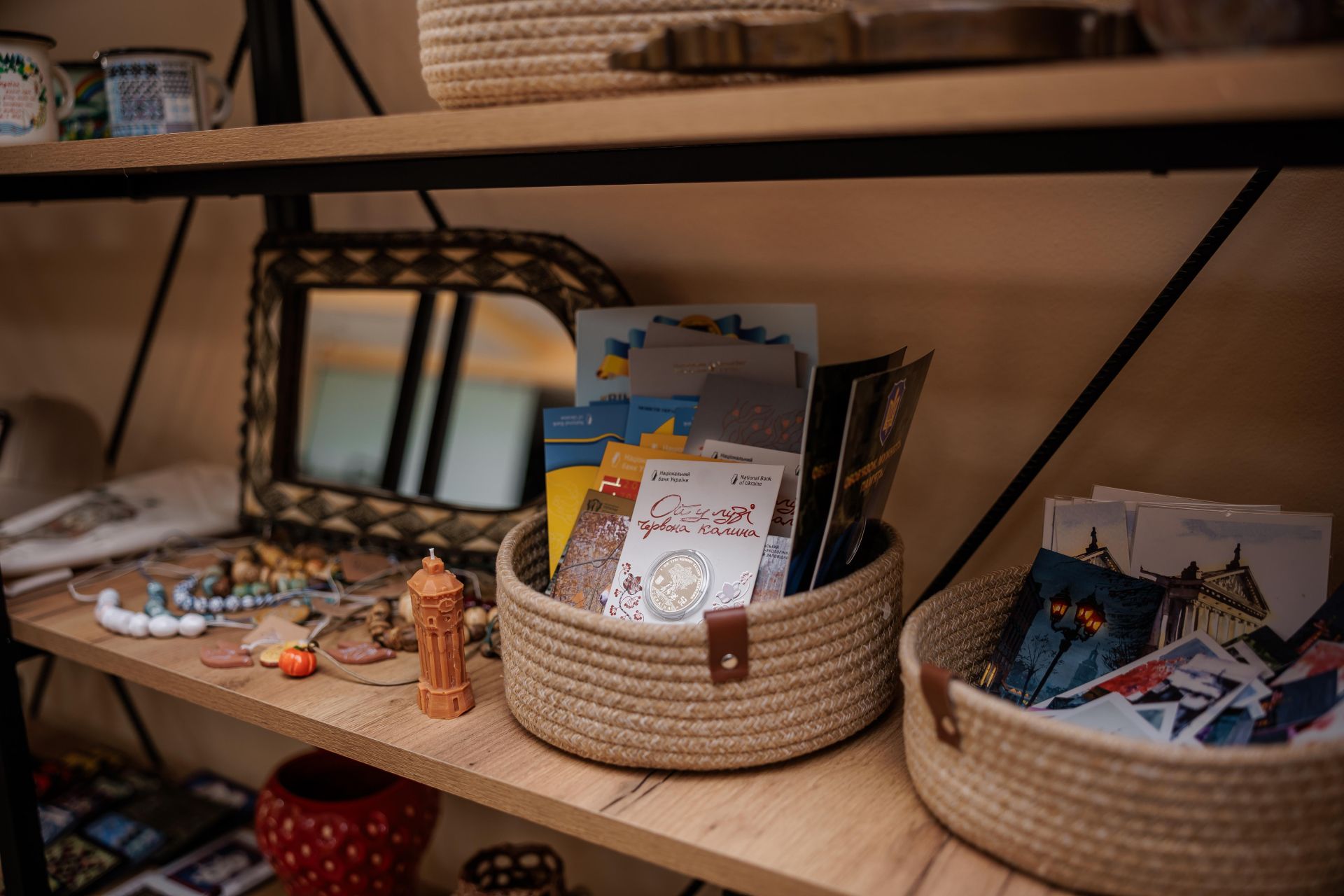 - Магазинчик-сувенірна зона з авторськими дрібничками, монетами, книгами й стікерами