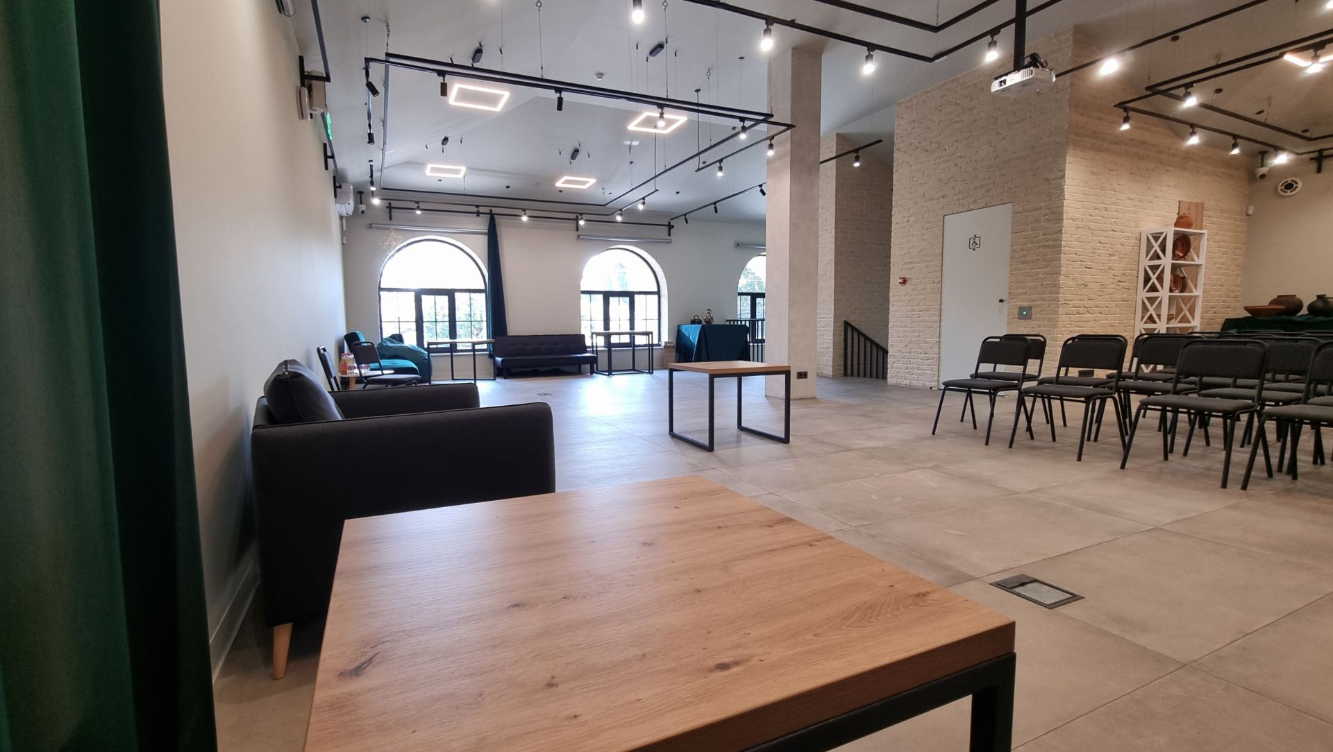 Зала на другому поверсі доступна для маломобільних людей, маємо спеціальний ліфт. Тут зручно проводити художні виставки, майстер-класи, лекції, конференції чи семінари, або навіть камерні концерти чи танцювальні вечори. Також другий поверх працює у форматі коворкінгу. Оренда конференц-зали чи оренди місця для роботи — погодинна.