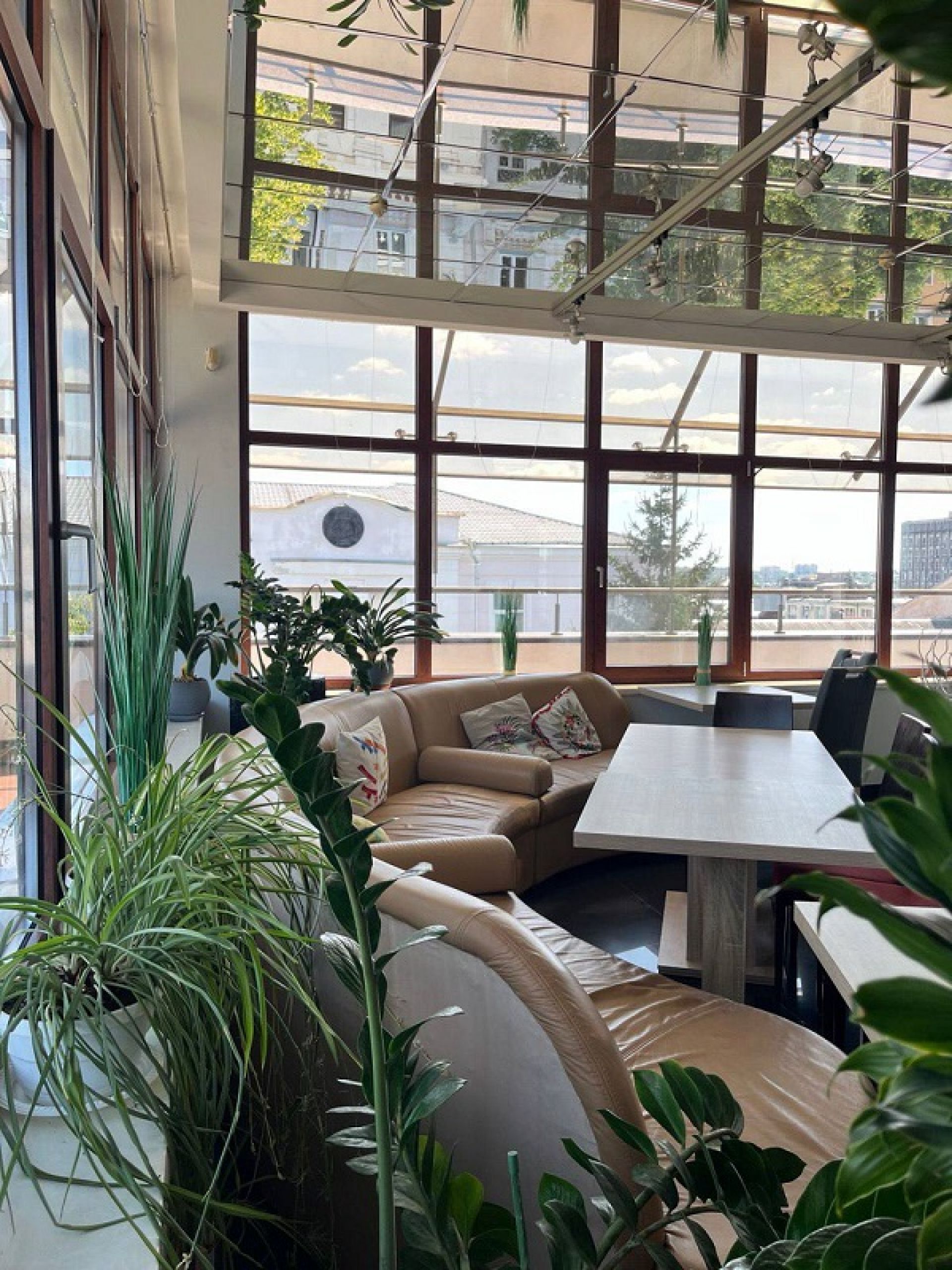 - Зручності: кав'ярня з напоями та десертами на першому поверсі, внутрішній літній майданчик на території, технічне приміщення-гримерка біля конференц-зали, інклюзивна вбиральня (на 1-му поверсі)