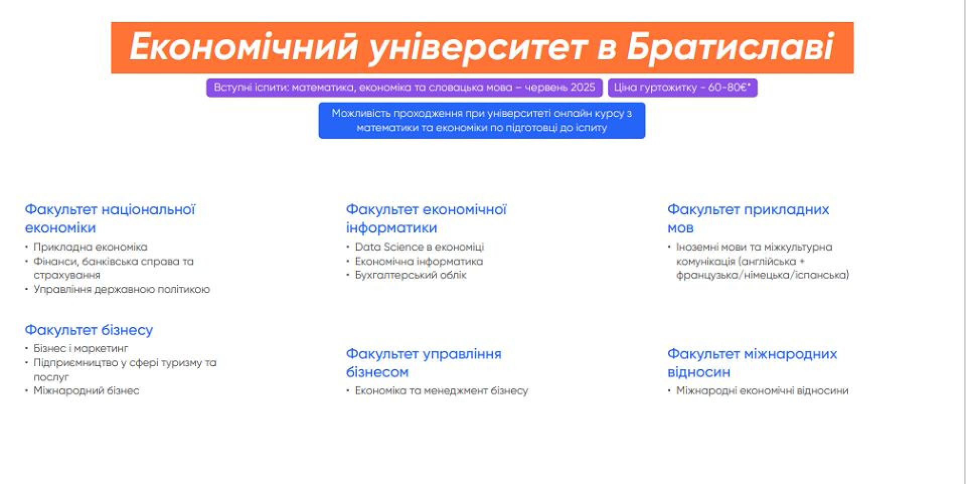- Фінанси, банківська справа, страхування та фондовий ринок – отримай знання про фінансові системи, інвестування, банківські операції та сучасні технології у фінансах.