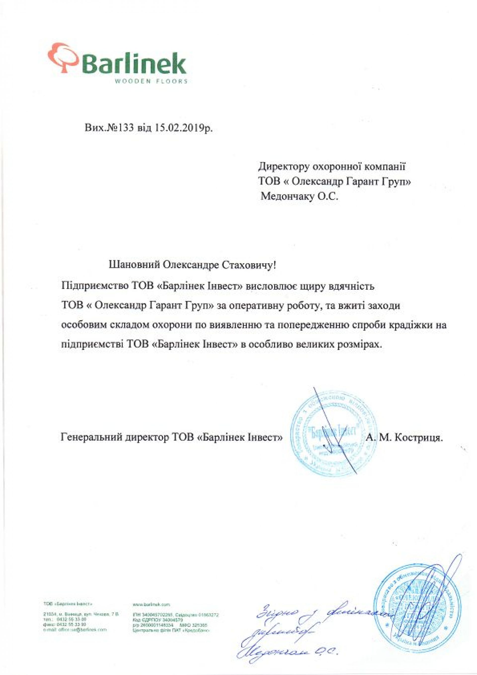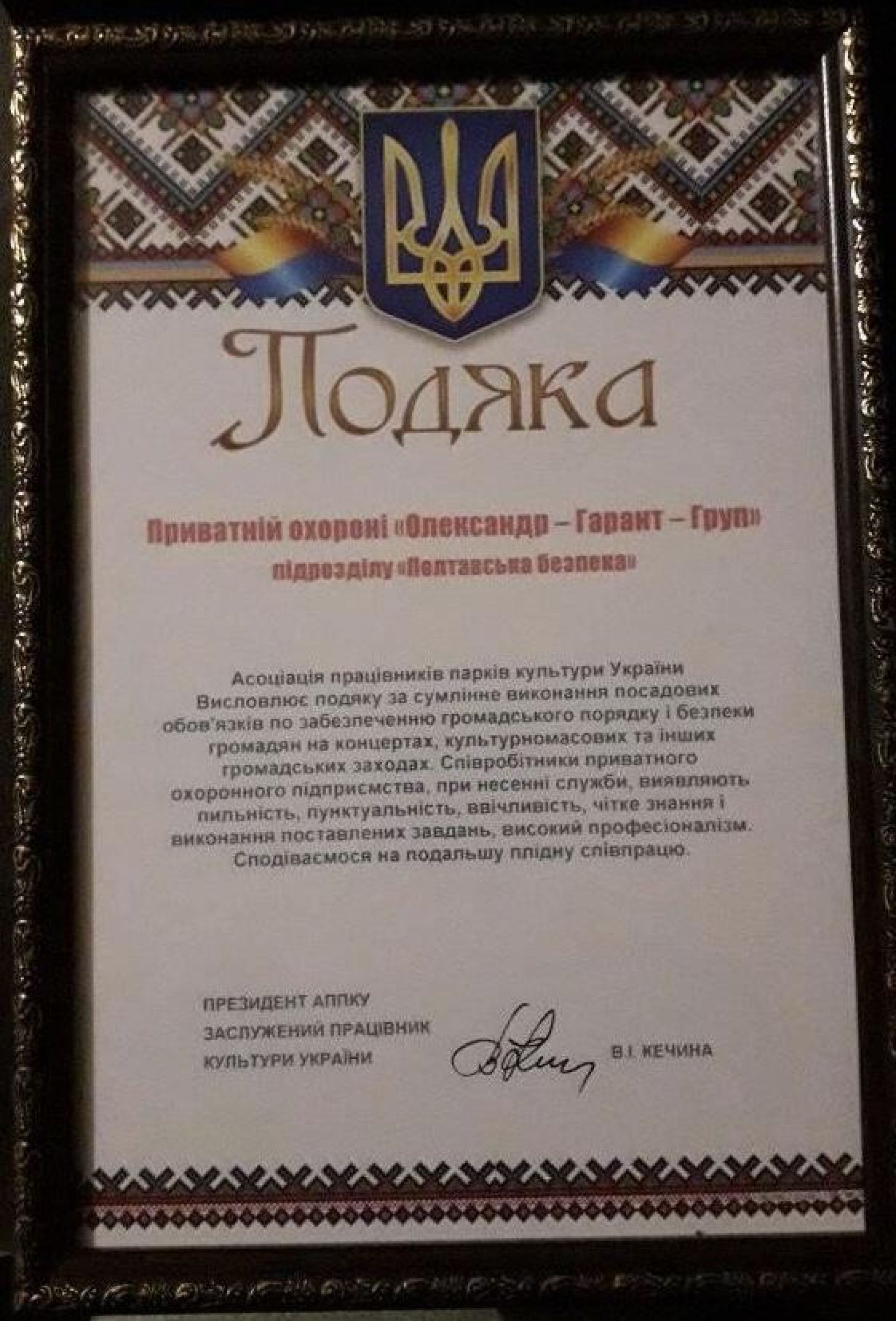 надає послуги в сфері забезпечення комплексної безпеки бізнесу і за цей час зарекомендувала себе як надійне та кваліфіковане підприємство.