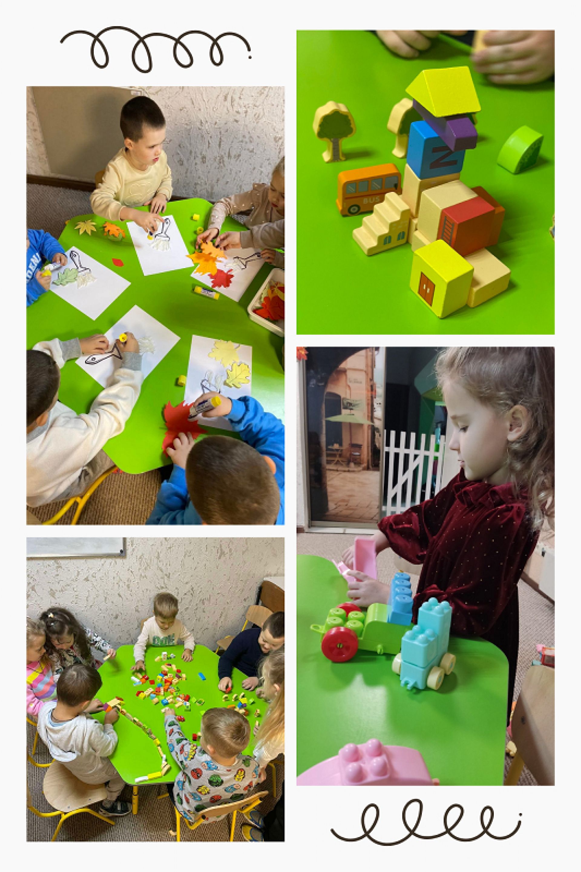 - музикування та творчість, де діти співають, малюють, ліплять і розкривають свій талант;
