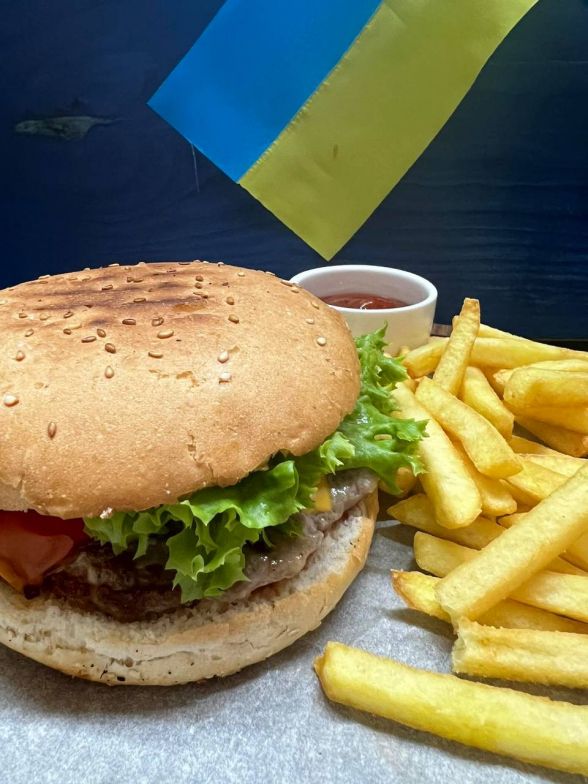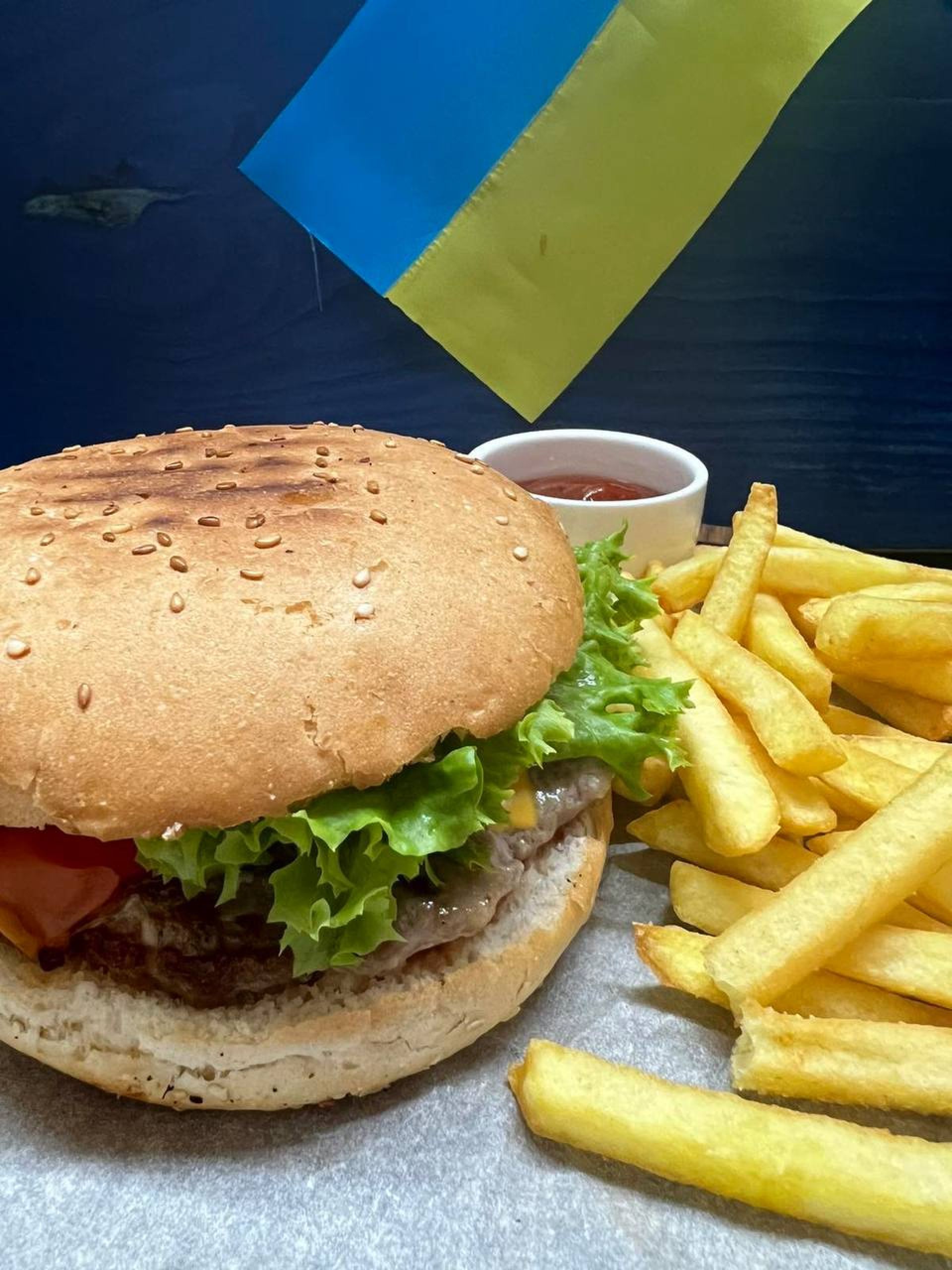 - Бургер з куркою та картоплею фрі (300г) – 140грн