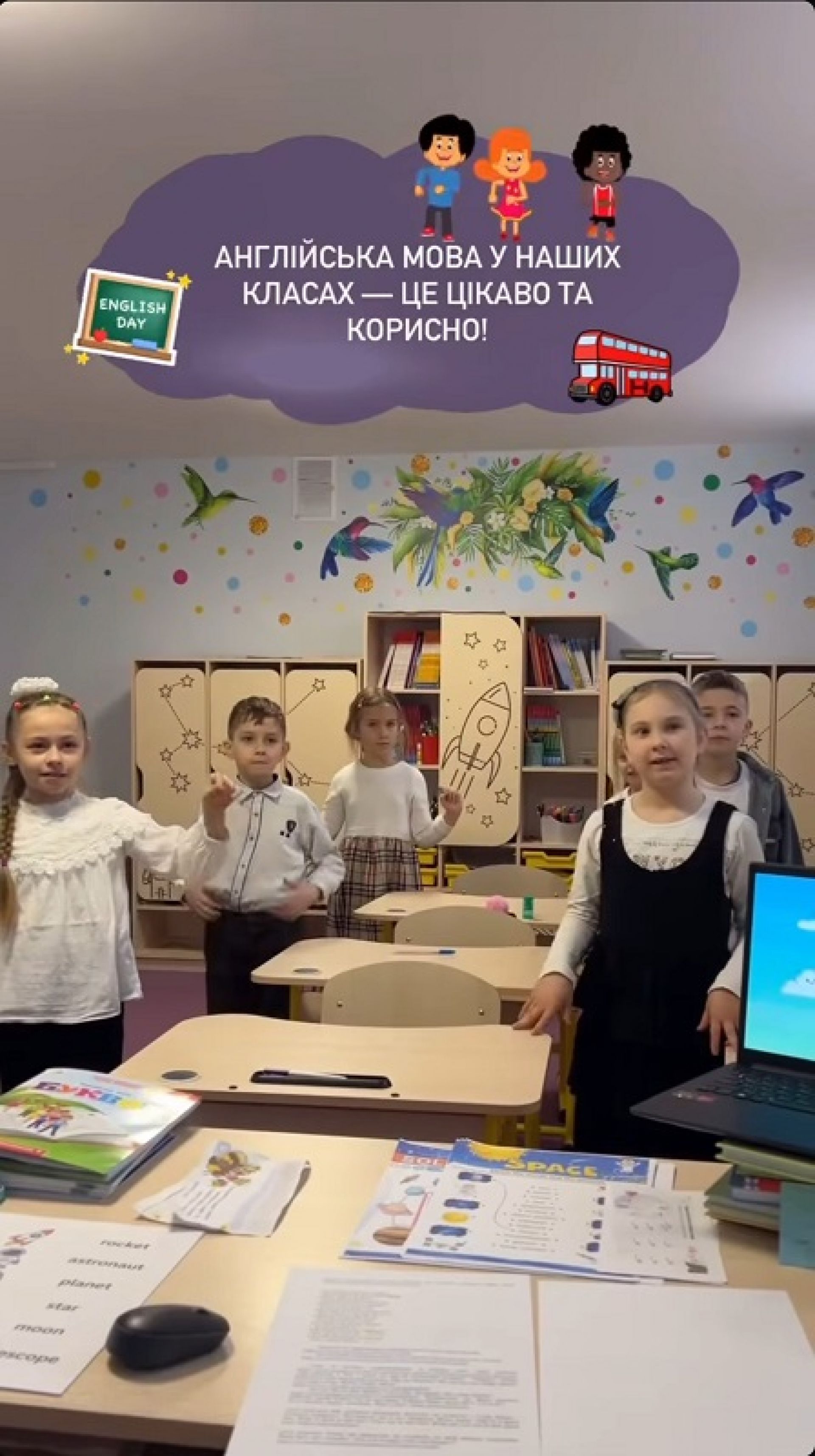 - 5 уроків англійської мови щотижня в підгрупах за рівнем володіння мовою.