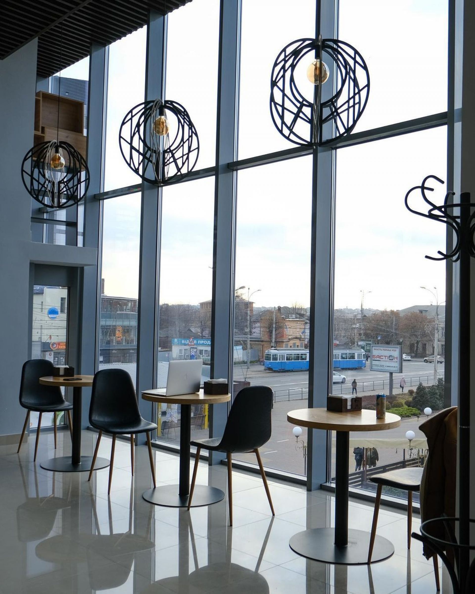 Це нова кав'ярня, яка відкрилася на Замості. У закладі панорамні вікна з виглядом на проспект Коцюбинського. Можна пити каву та спостерігати за тим, як курсують трамваї чи люди поспішають у справах.