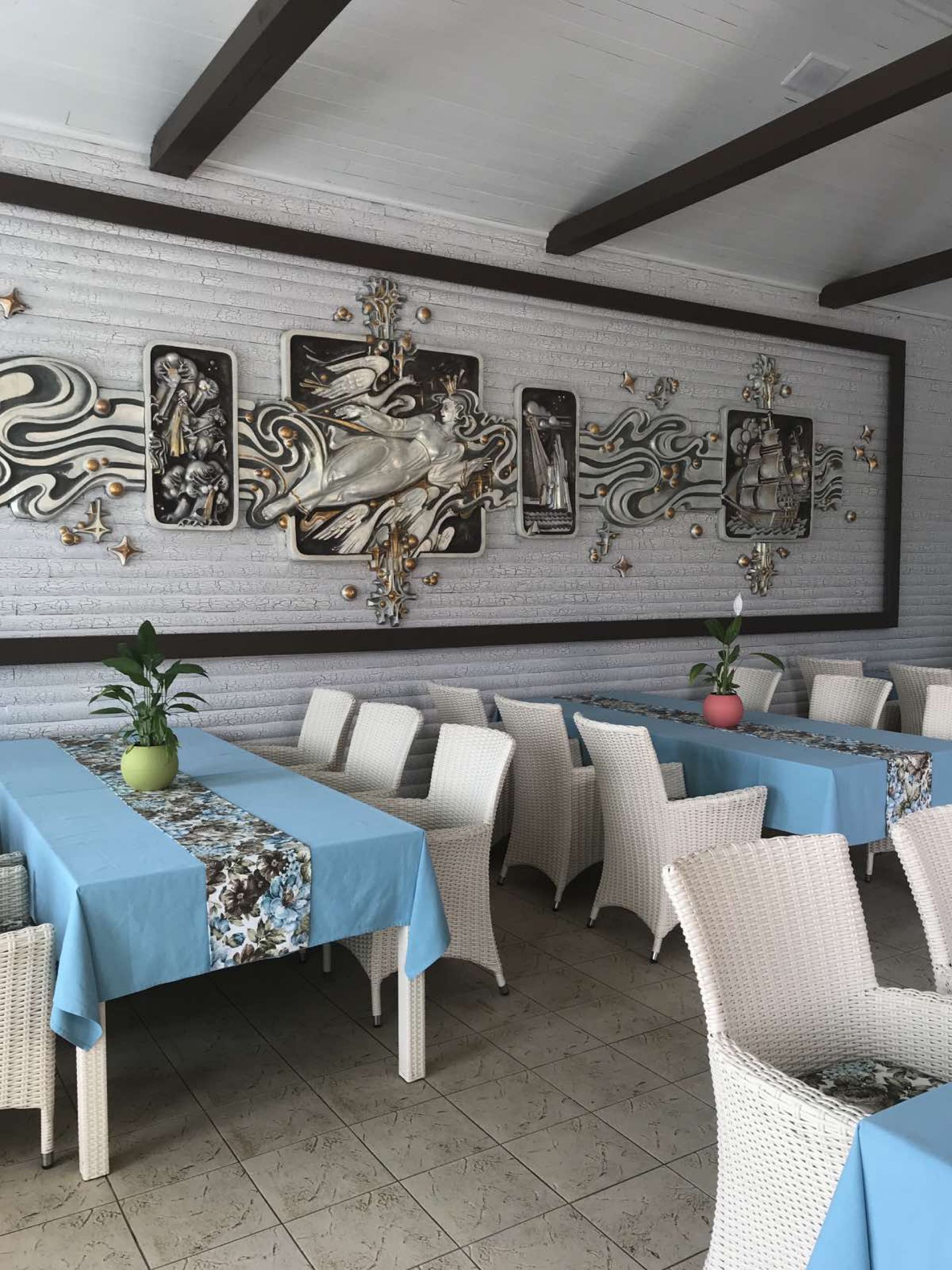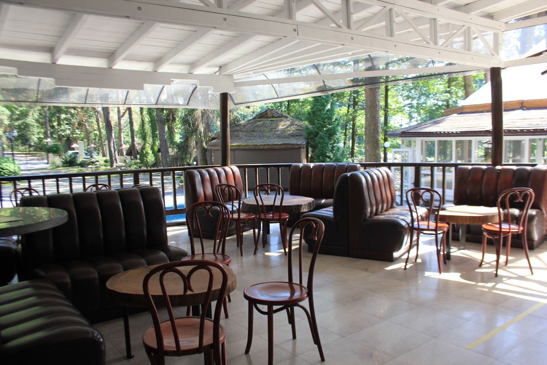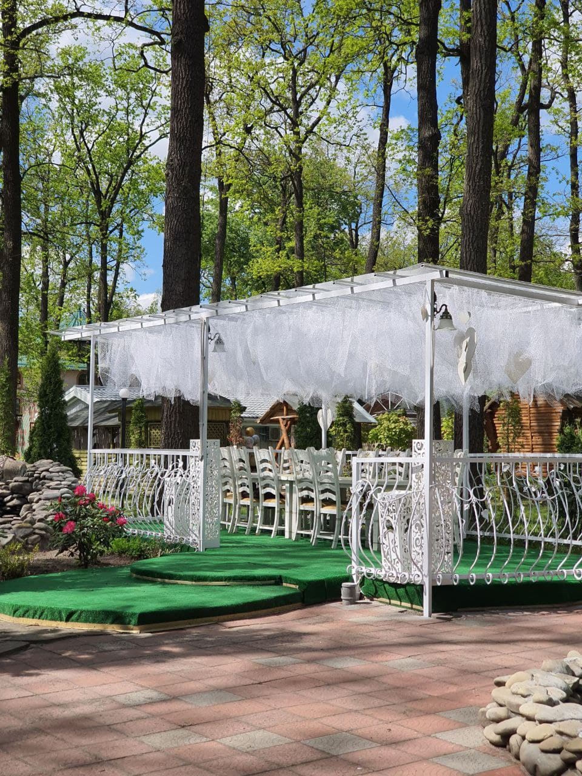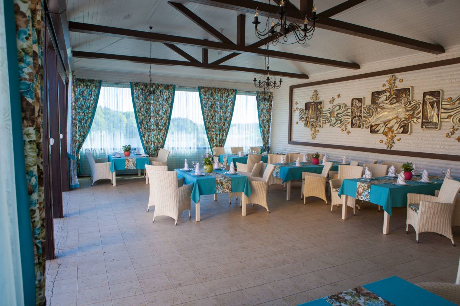 Крім основного залу, до послуг гостей банкетний зал, літня тераса, відкриті альтанки та просторі майданчики просто неба.Тераси мають гарні краєвиди, ідеально підходять для романтичних побачень та душевних родинних свят.