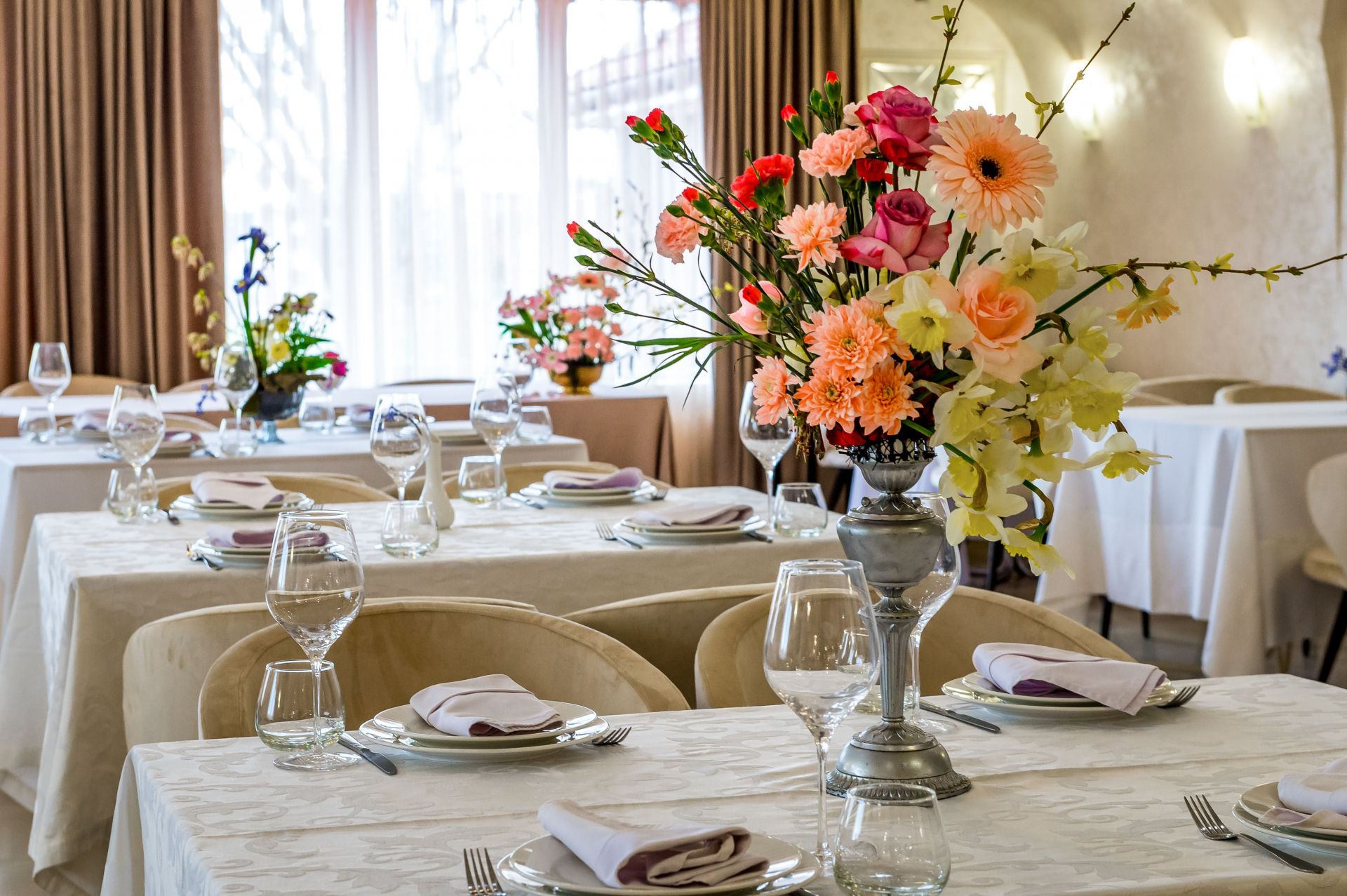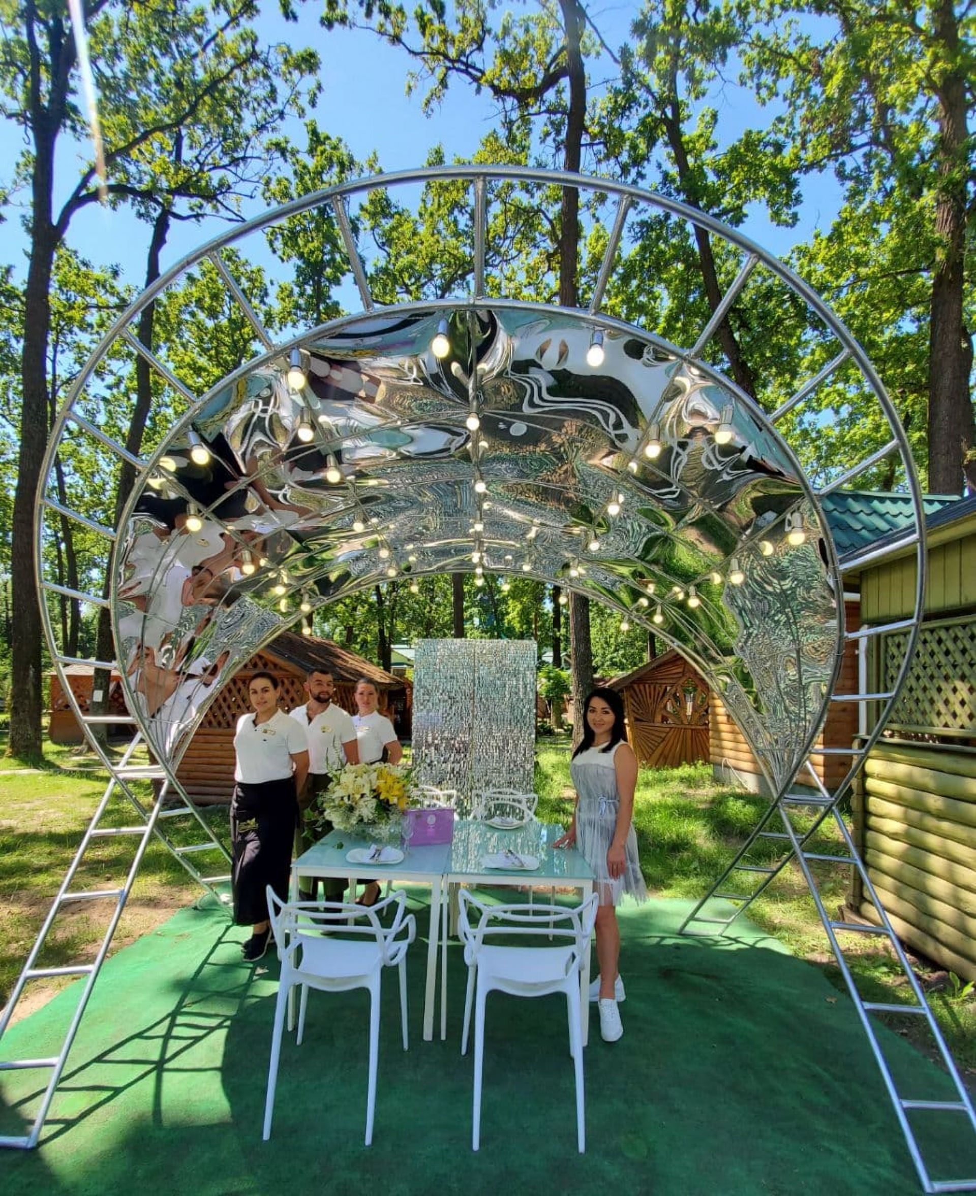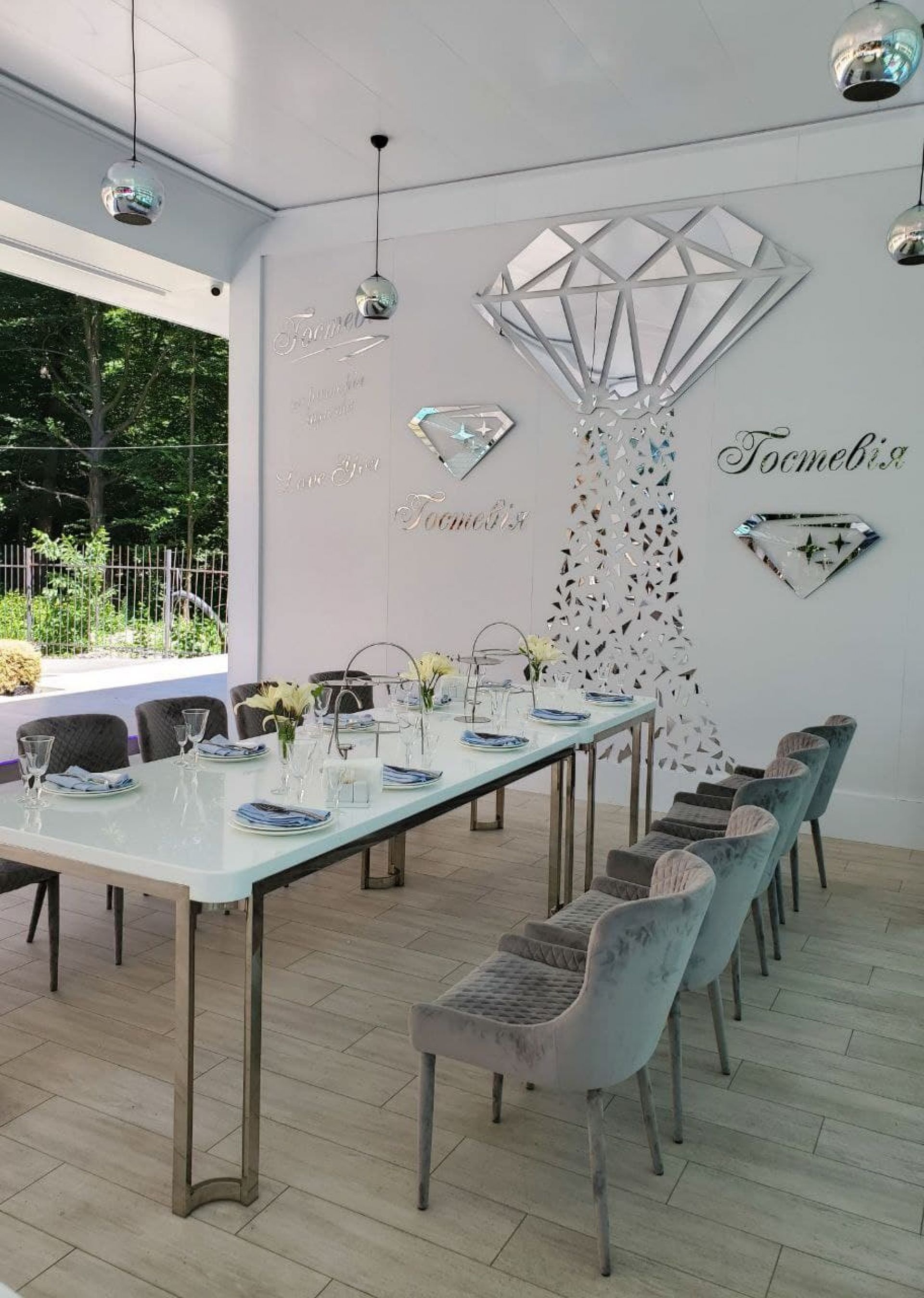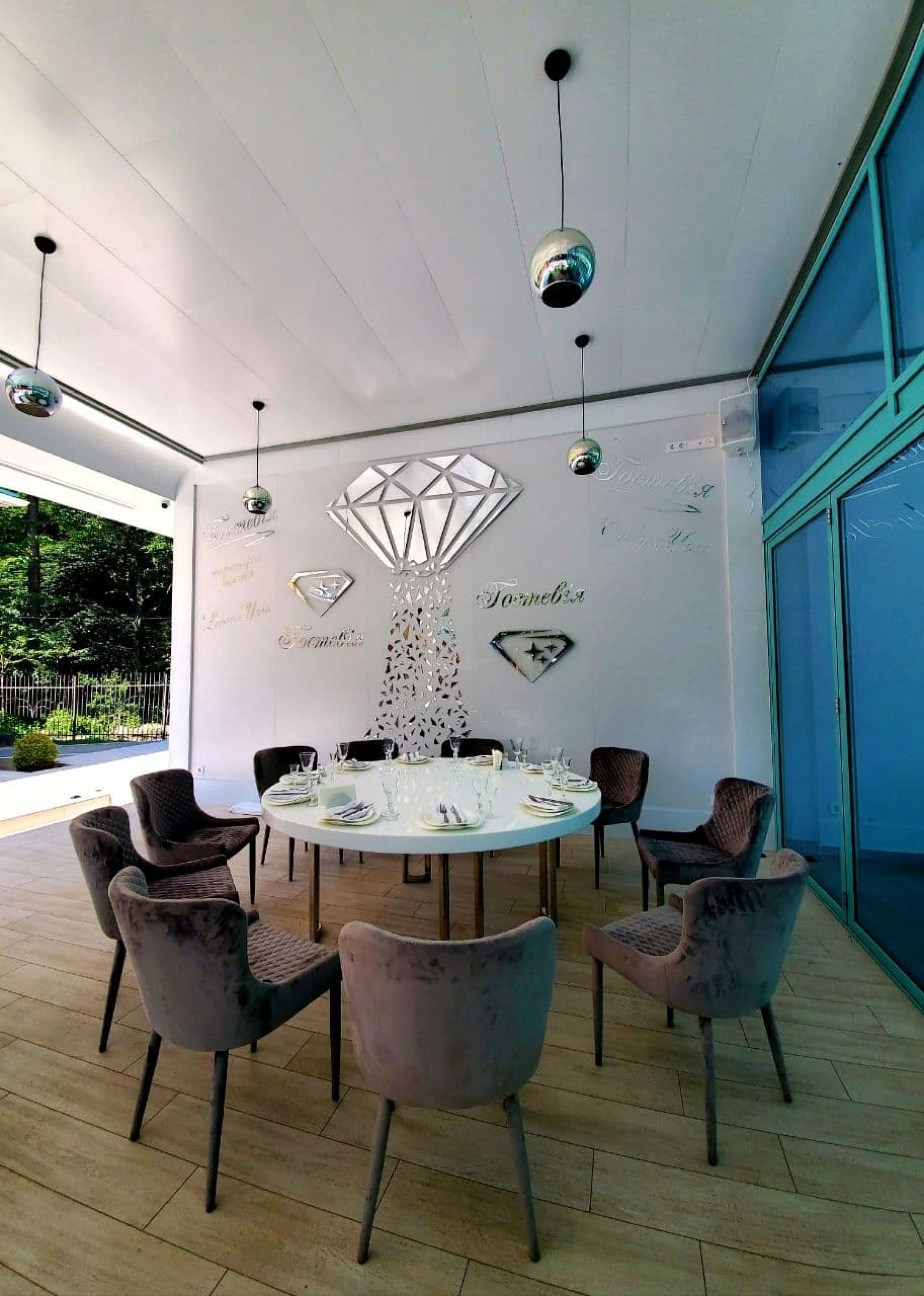 Крім основного залу, до послуг гостей банкетний зал, літня тераса, відкриті альтанки та просторі майданчики просто неба.Тераси мають гарні краєвиди, ідеально підходять для романтичних побачень та душевних родинних свят.