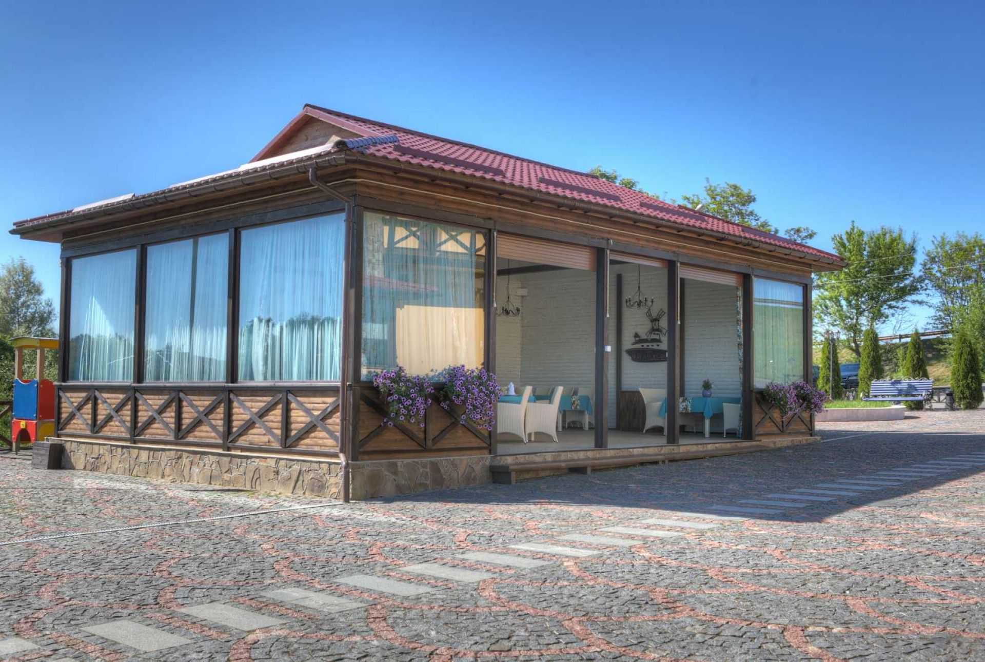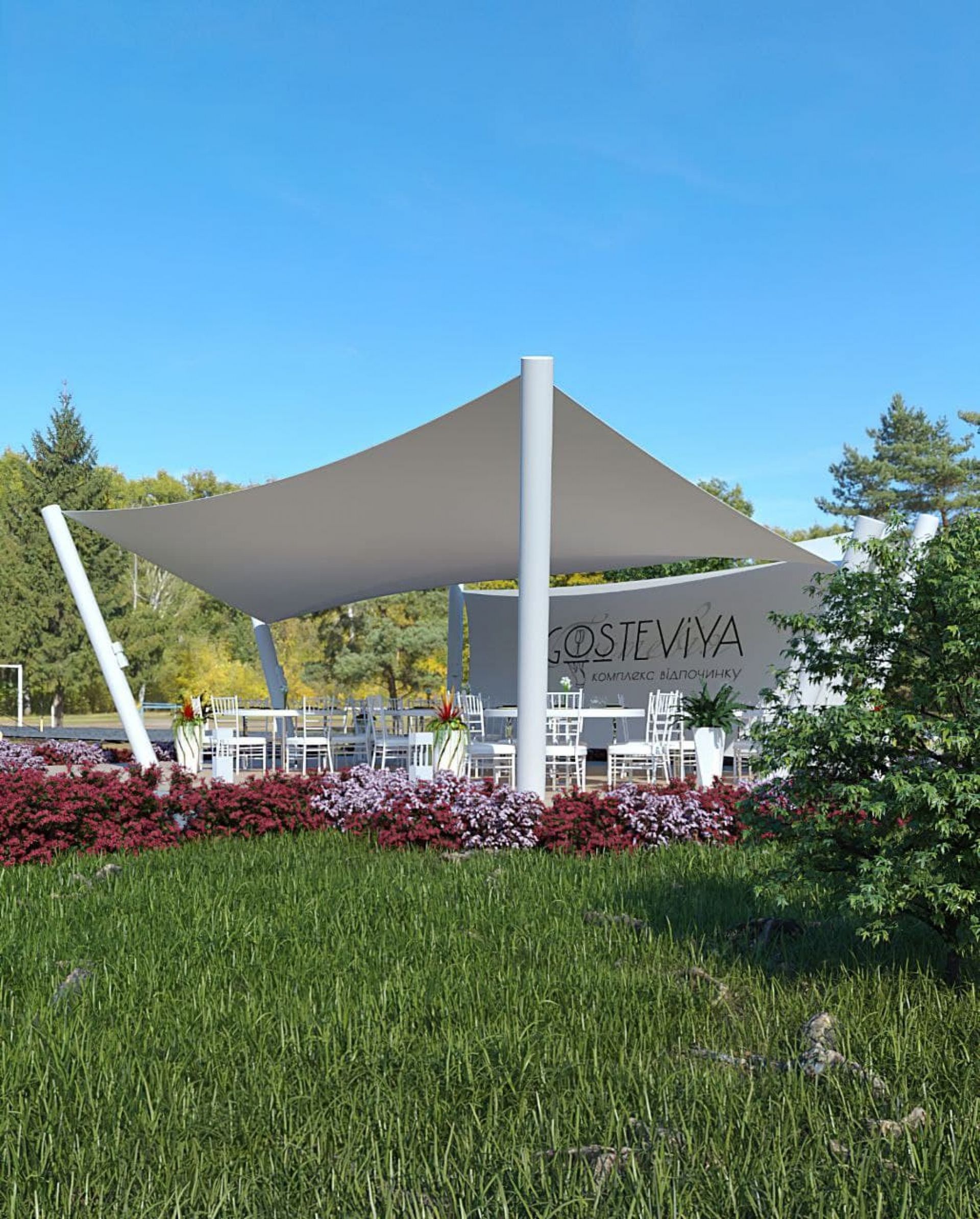 Розважально - готельний комплекс«Гостевія» — це дивовижне місце, що поєднує в собі усе, що потрібно для повноцінного релакса, відпочинку тіла та душі. Філософія бренду — гармонійне поєднання затишку зі смаколиками, гарним настроєм та світлими емоціями, що створювалась подорожуючи світом у пошуках витончених та яскравих ідей.