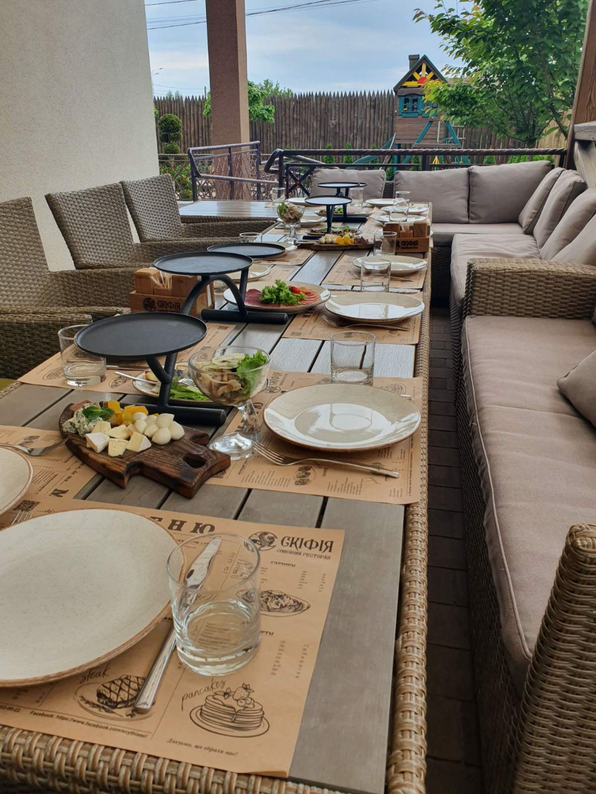 Ми запрошуємо Вас в новий Ресторан «Скіфія», майже за містом на околиці, по сімейному затишний. Ваша малеча може бавитись на дитячому майданчику поки Ви скуштуєте наші ексклюзивні страви або ж п'єте філіжанку кави з десертом.