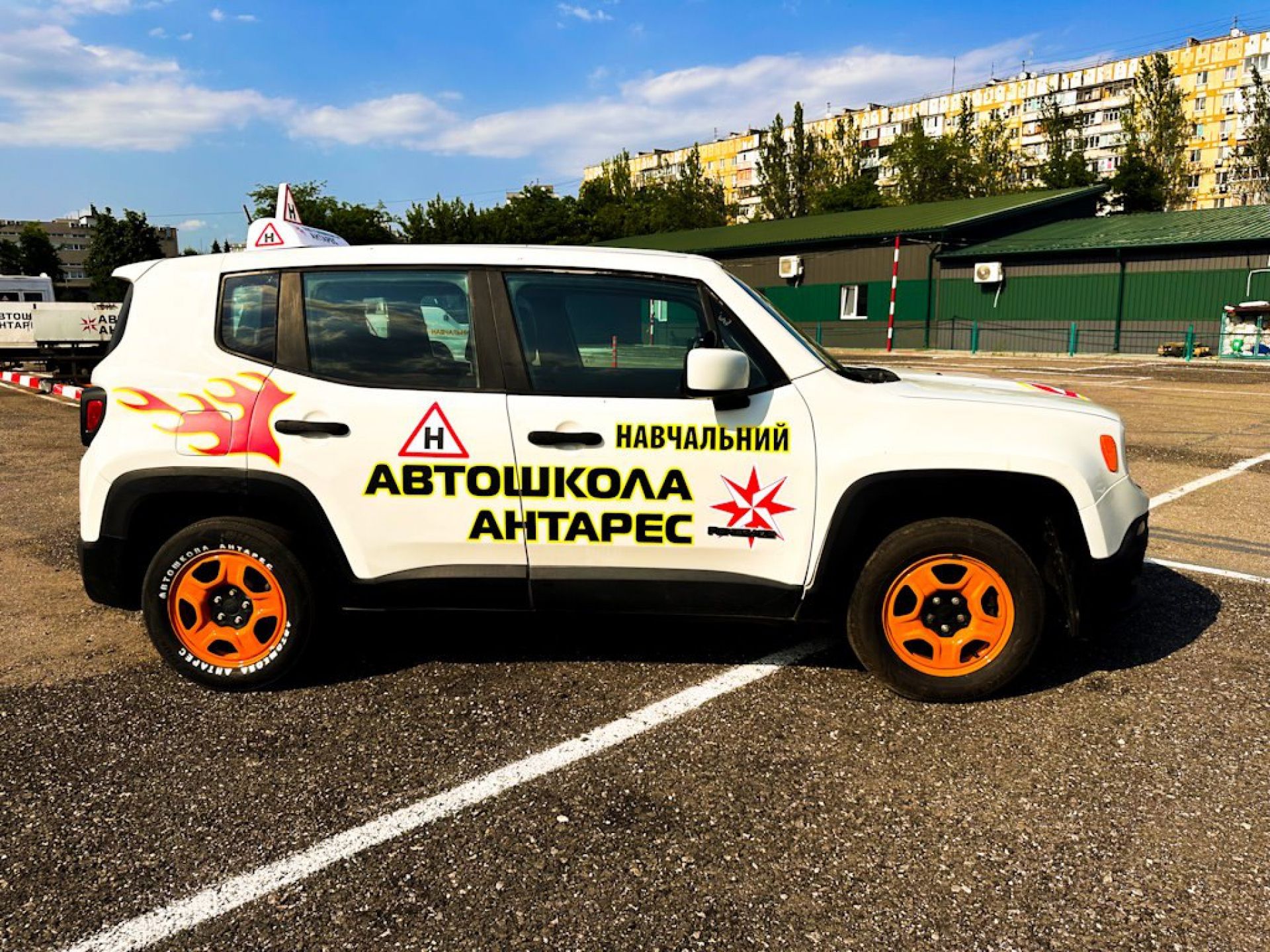 Антарес має власний сучасний автопарк, в якому присутні авто різних марок: Skoda, Kia, Jeep та інші. Також власний зручний майданчик для навчання.