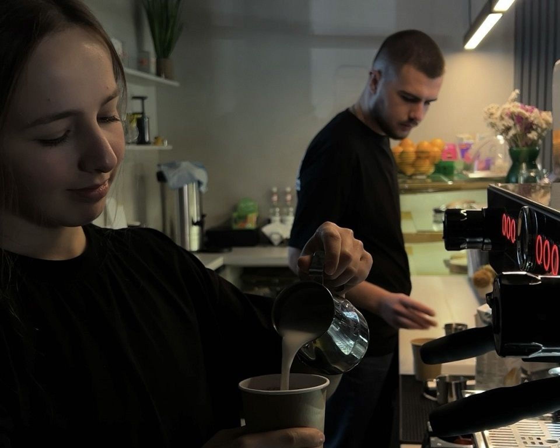 На фоні грає техно-музика, що створює енергійну атмосферу для тусовок і відпочинку. Молодь цінує цю кавʼярню не лише за каву, але й за можливість провести час у дружній компанії.