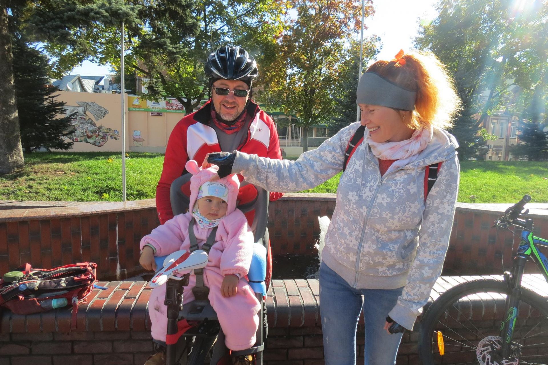 – Вона їздить зі мною із дев’яти місяців. Аріна зранку встала раніше за інших і нагадала нам про велозабіг. Сидить у велокріслі, до якого кріпиться надійними ременями безпеки, – каже Юрій Мусійчук.