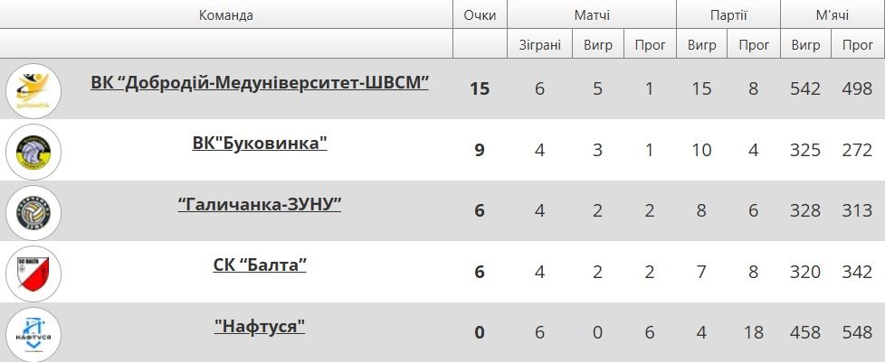 - У шести зіграних матчах підопічні Юлії Якушевої і Олени Буртової набрали 15 очок та на шість балів випереджають найближчого конкурента «Буковинку».