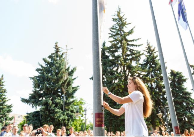 У Вінниці, як і в інших містах, підняли Олімпійський прапор на підтримку українських атлетів.