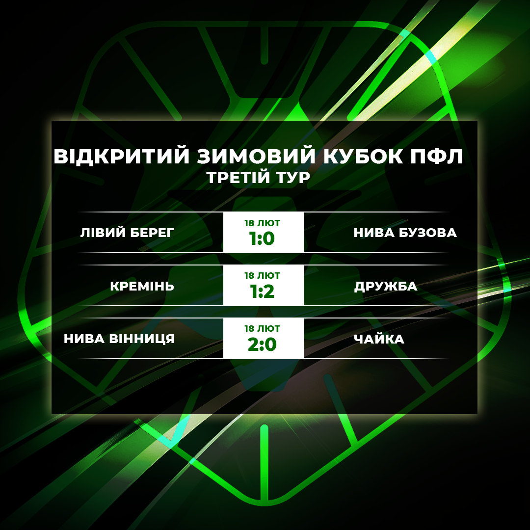 «Нива» піднялася на друге місце Зимового Кубку ПФЛ. Вдома переграла «Чайку»