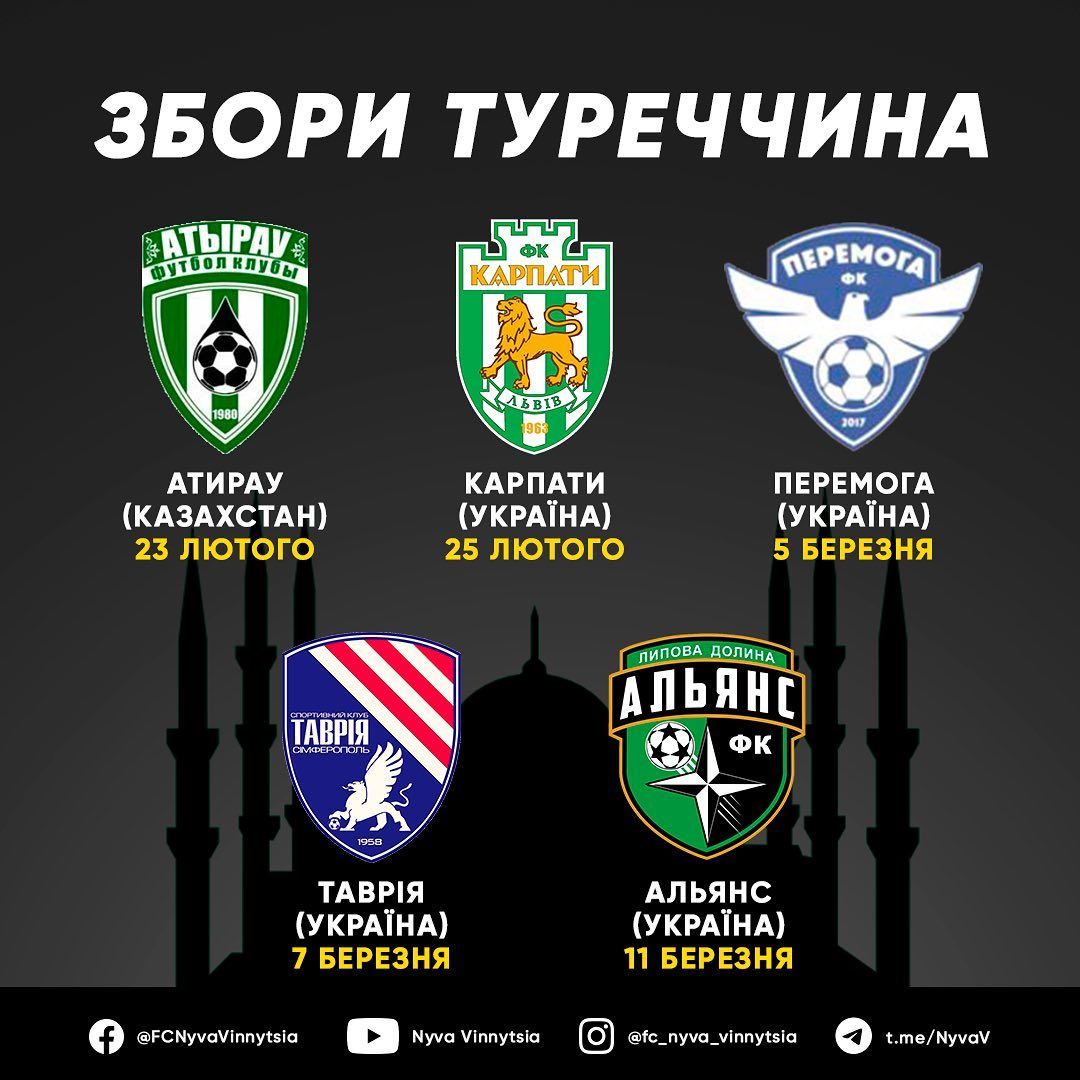 Під час третього тренувального збору «Нива» проведе контрольні матчі у Туреччині. 23 лютого наша команда зіграє проти команди Прем’єр-ліги чемпіонату Казахстану «Атирау», дворазового віце-чемпіона країни. Далі нивівців чекають матчі проти українських клубів. Це «Карпати» (Львів), «Перемога», «Таврія» і «Альянс». Також тривають перемовини зі ще двома потенційними суперниками.
