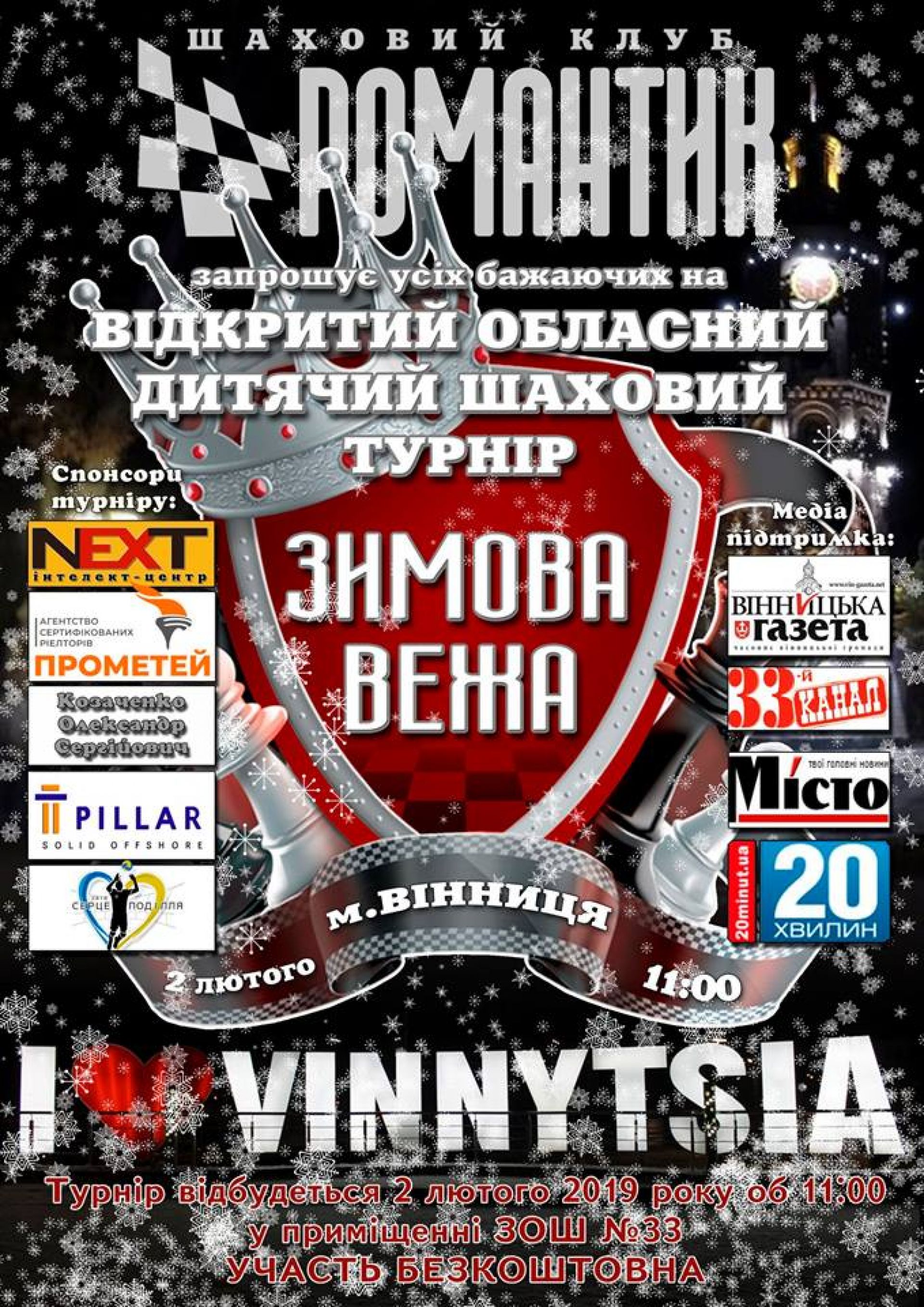 У Вінниці започаткували новий дитячий шаховий турнір «Зимова вежа». Його провели на базі Вінницької школи № 33 завдяки сприянню адміністрації цього навчального закладу.