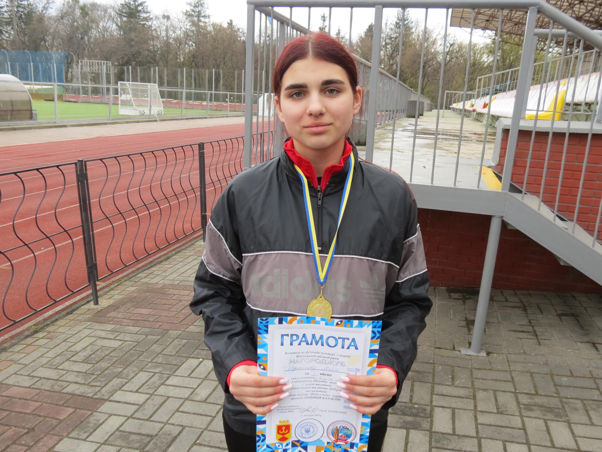 Аріна Петрова, 14 років, перемогла в штовханні трикілограмового ядра. Запустила його на відстань 10,32 метри.