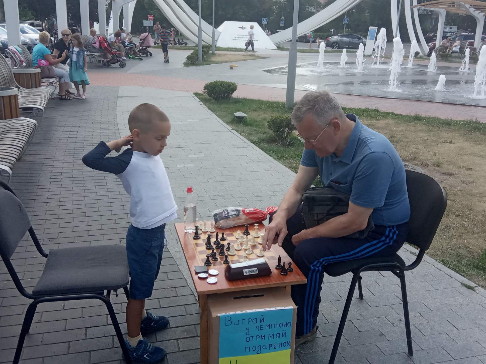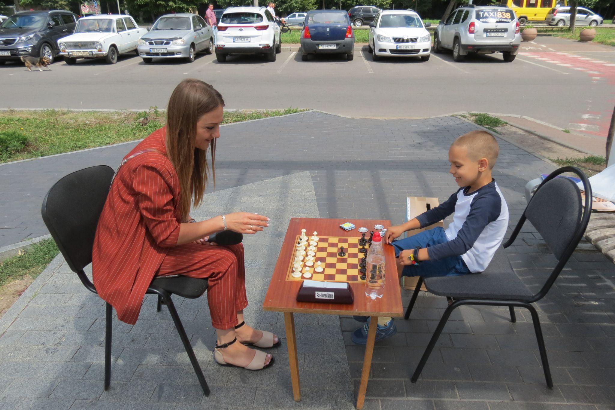 У Вінниці днями провели незвичний спортивний захід. П’ятирічний шаховий вундеркінд Артем Кучер, абсолютний переможець нещодавнього меморіалу Олексія Бутовського, грав проти всіх охочих вінничан просто неба.