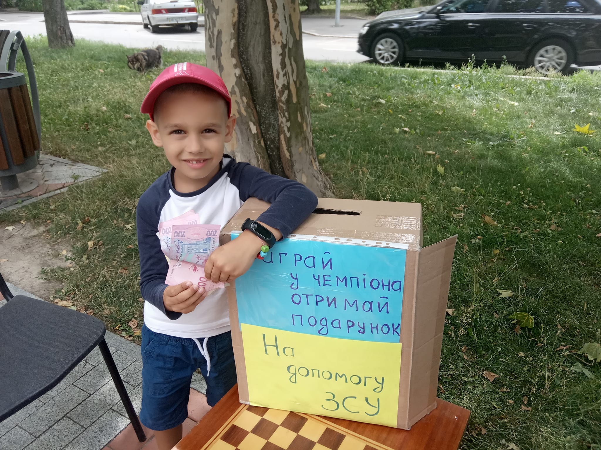 У Вінниці з’явилися і юні спортсмени-волонтери, які грою в шахи просто неба проти всіх охочих (в тому числі дорослих) збирають гроші для військових. Першим із них був наймолодший володар першого дорослого розряду з шахів в Україні Артем Кучер.