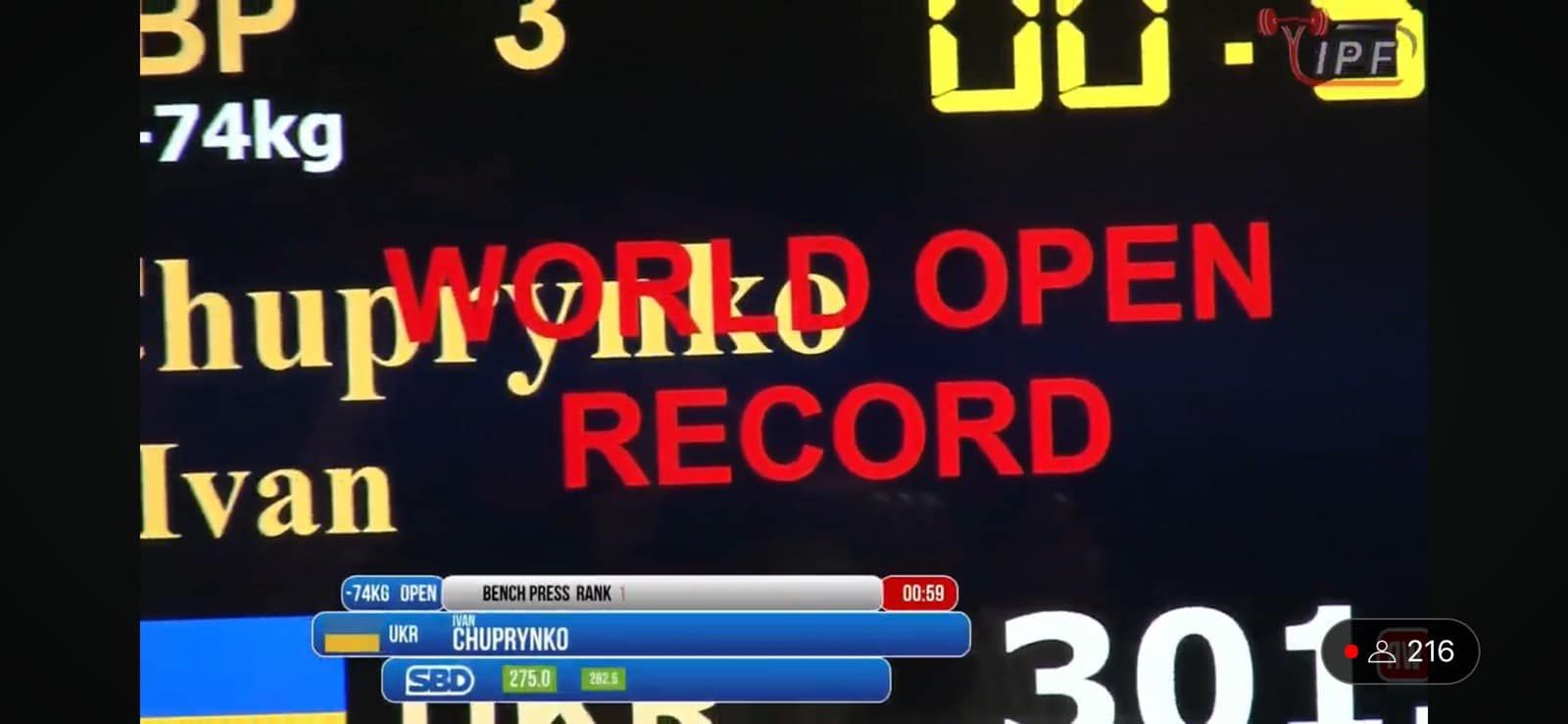 Заслужений майстер спорту України Іван Чупринко у жимі лежачи із використанням спеціального екіпірування виступав у ваговій категорії до 74 кг. Із результатом 282,5 кг 38-річний спортсмен здобув золоту медаль для України! Він навіть спробував встановити новий світовий рекорд (301 кг). Але, на жаль, не підкорив цю величезну вагу.