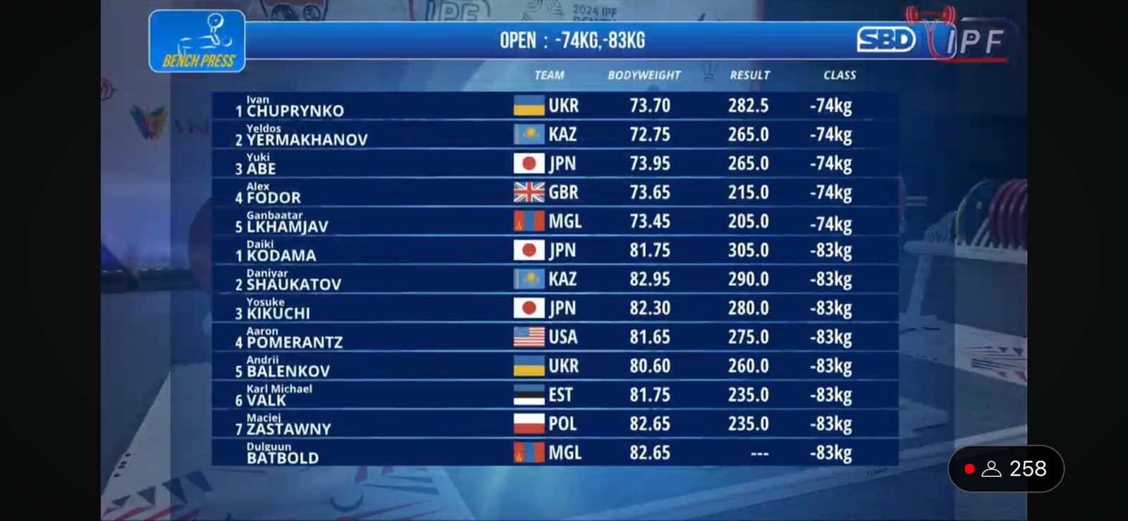 В інших змаганнях, вже у класичному жимі лежачи, Іван Чупринко із результатом 210 кг посів другу сходинку. А Олег Чеботаєв тут став четвертим.