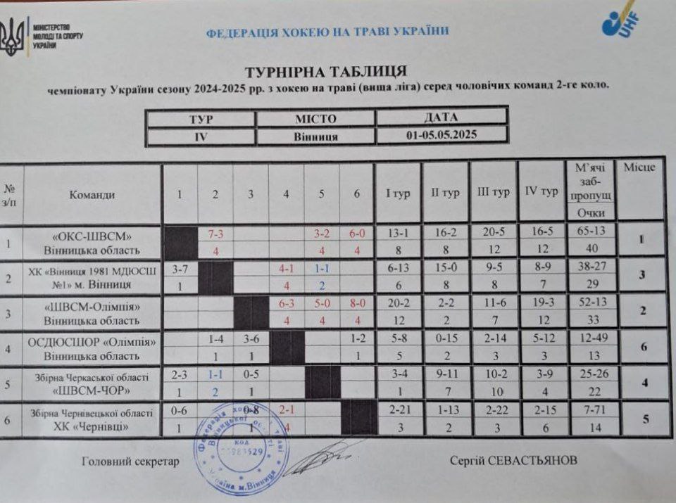 - У Вінниці провели четвертий тур чемпіонату України з хокею на траві серед чоловічих команд. Ще попереду ще два тури. Фінішують змагання 26 червня.