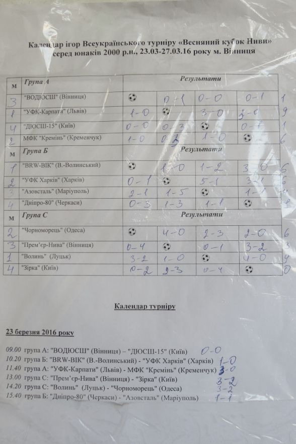 Тим часом господарі поля, ДЮСШ «Прем’єр-Нива» в першій грі групового етапу здолала «Зірку» (Київ) – 3:2. Але далі нивівці програли «Чорноморцю» (Одеса) – 0:4 і «Волині» (Луцьк) – 0:1. В стиковому матчі «Прем’єр-Нива» перемогла «Кремінь» (Кременчук) – 1:0, а в поєдинку за 5-е місце знову програла «Чорноморцю» (Одеса) – 2:3.