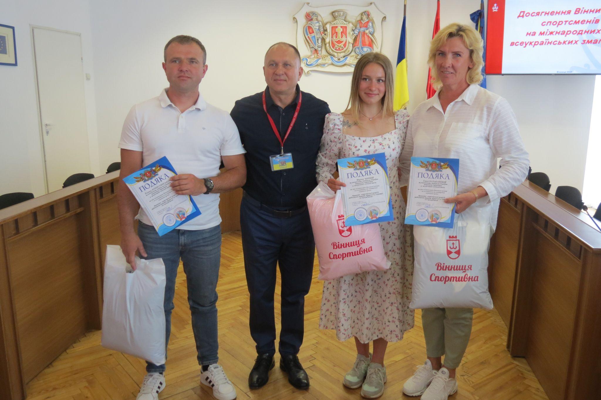 - Вже вп’яте у цьому році найкращі спортсмени Вінниці за підсумками міжнародних і Всеукраїнських змагань отримали подяки і подарунки від міської ради та міського спорткомітету.