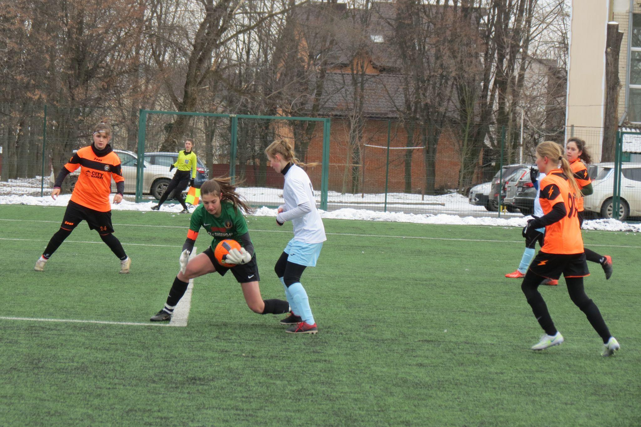 В стартовій грі вінничанки розгромили ДЮСШ м. Синельникове (Дніпропетровська область) — 5:0. Вже після першого тайму наші дівчата вели із відривом у чотири м’ячі, а після перерви довершили справу. Хет-триком відзначилася активна в нападі Олена Марценюк, капітан команди Вінниччини.