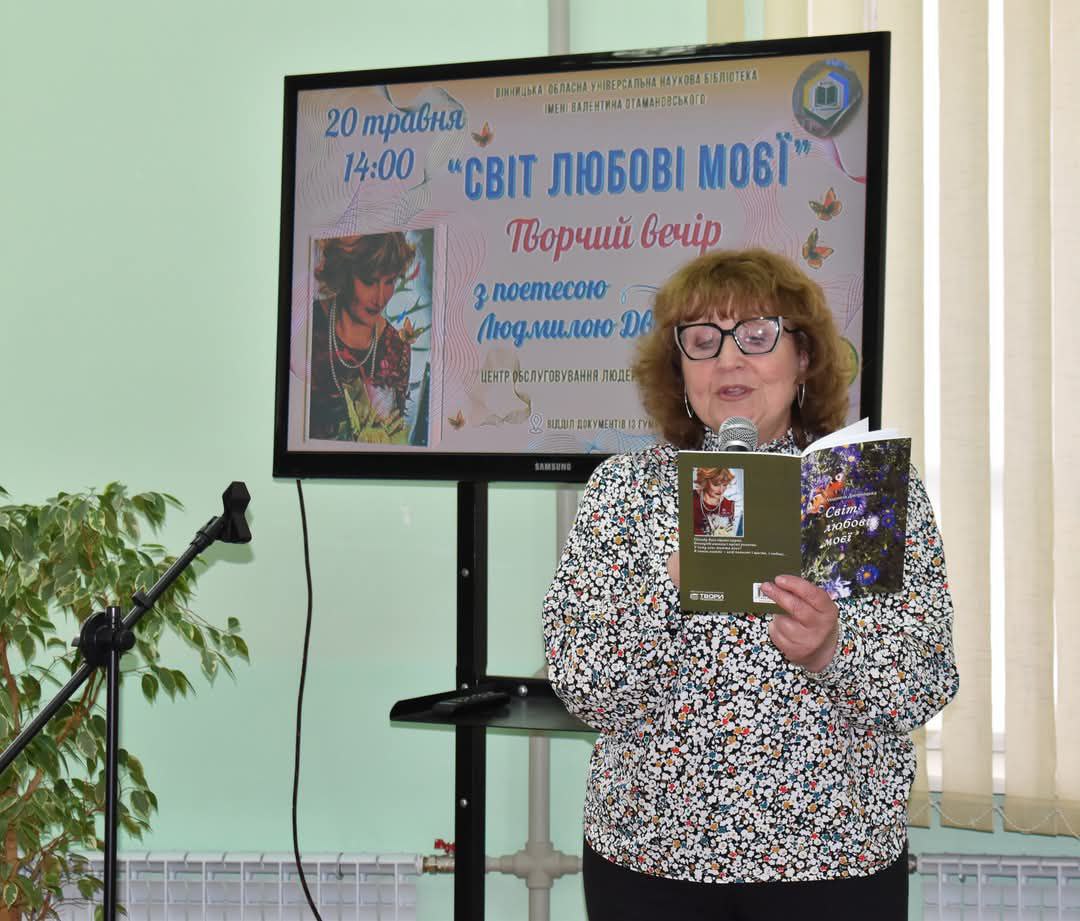 — Поки що на моєму рахунку лише один віршований збірник – «Світ любові моєї». Пишу вірші на різні актуальні теми, немає чогось одного. Про війну переважно складала на початку вторгнення. Але нещодавно написала вірша на військову тему, коли почула, як над головою летить ракета. Це було перед сильним обстрілом Києва, — сказала Людмила Дворніцька.