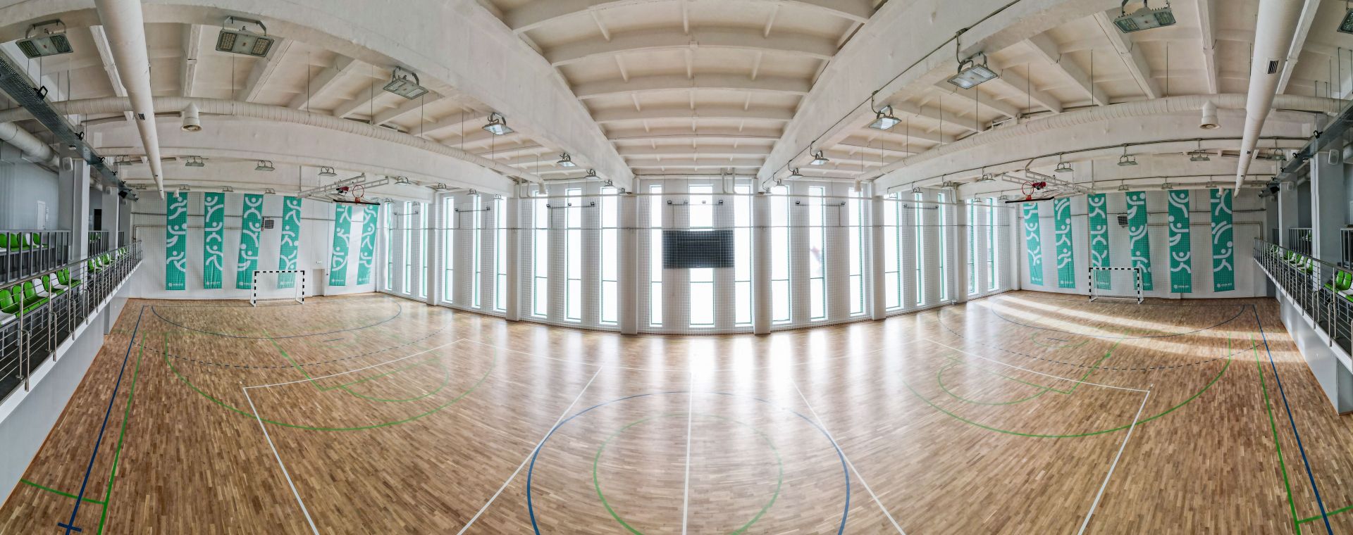 Ще один зал — одразу для гандболу, футзалу, волейболу і баскетболу — діятиме на другому поверсі споруди. Там же розташований басейн, розмірами 25 на 14 метрів.